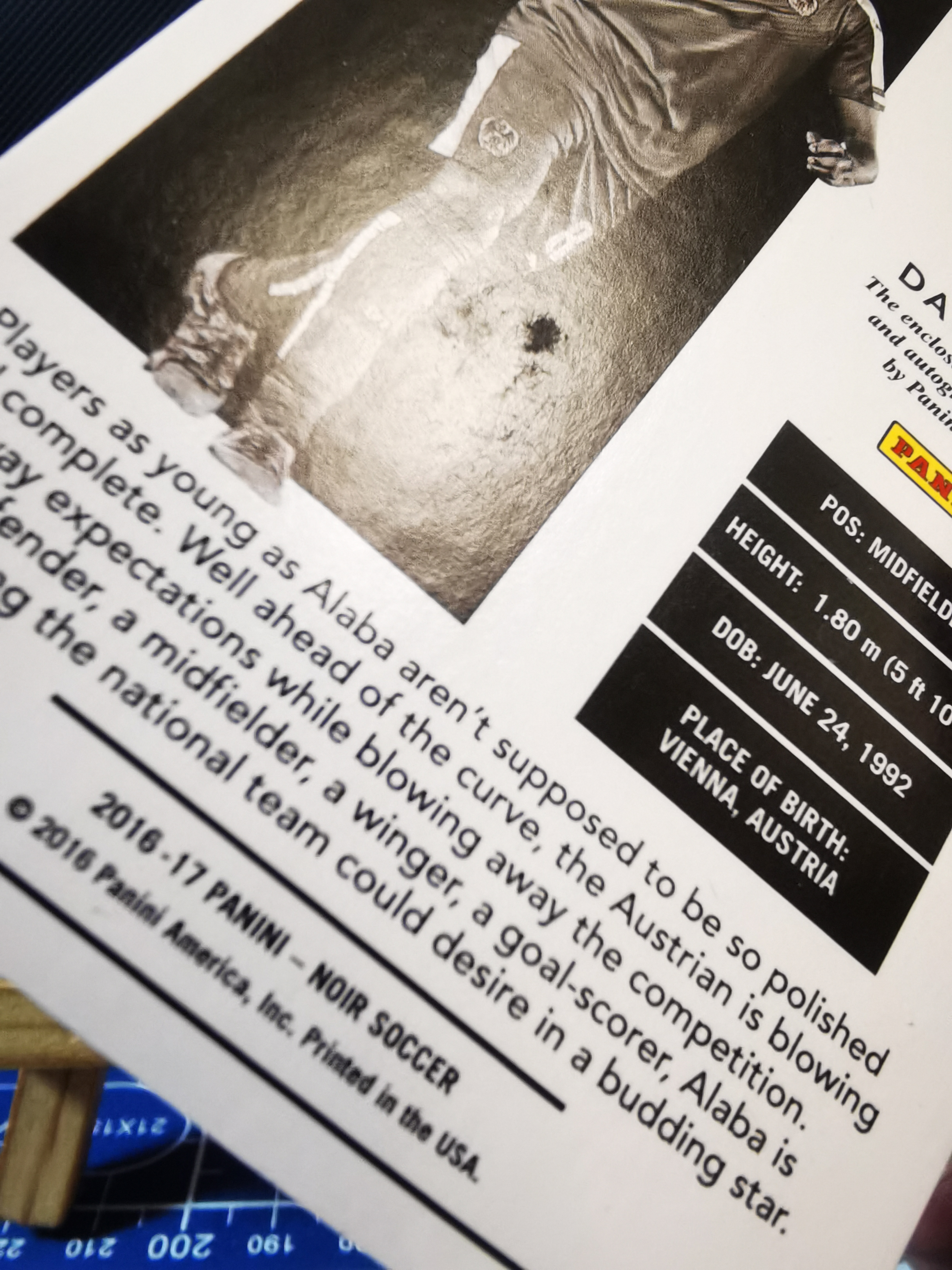 2016-17 Panini Noir David Alaba #MC-DAL 12/25编 圣诞编 诺尔 大卫·阿拉巴 签字 卡签 pa 球衣 物料 切割