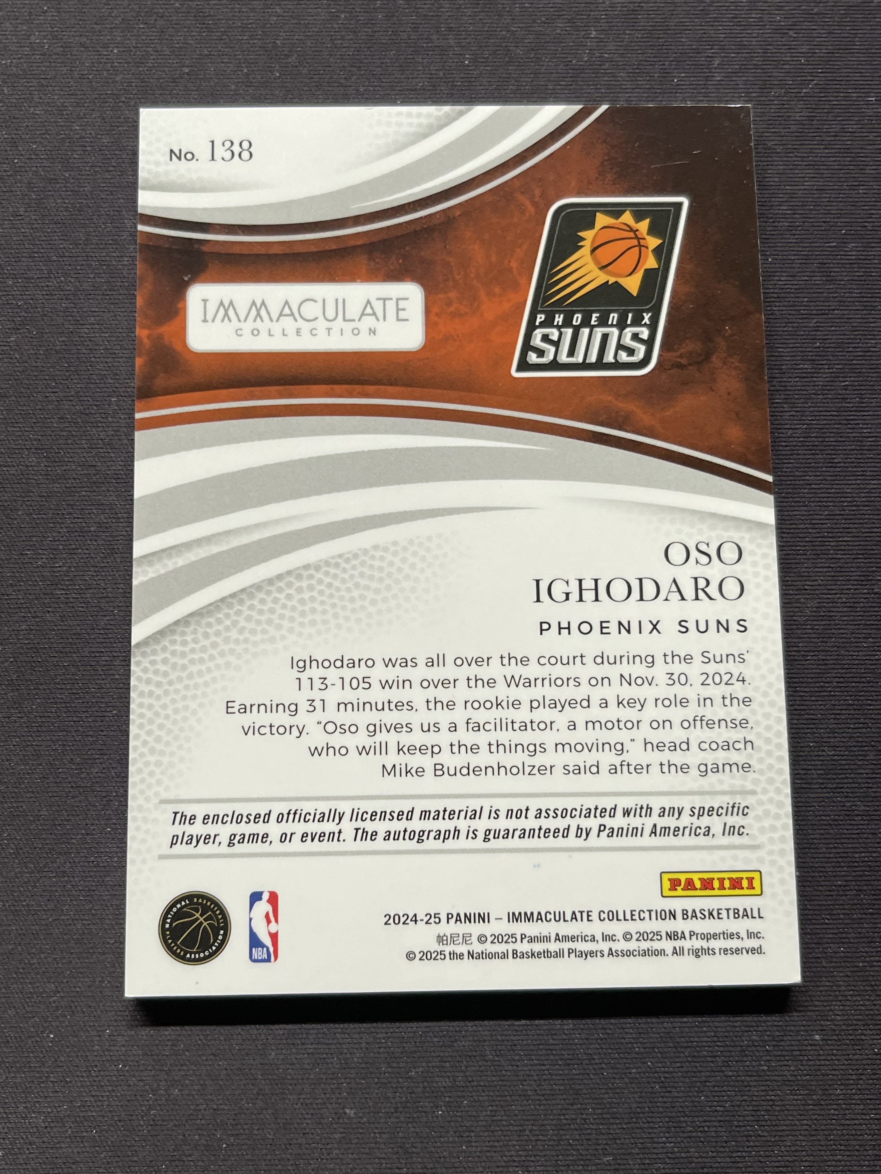 2024-25 Panini Immaculate Oso Ighodaro RC 太阳 伊戈达罗 新秀 patch 签字卡签 RPA 35/99编 瑕疵如图 不累计「老夫子」007