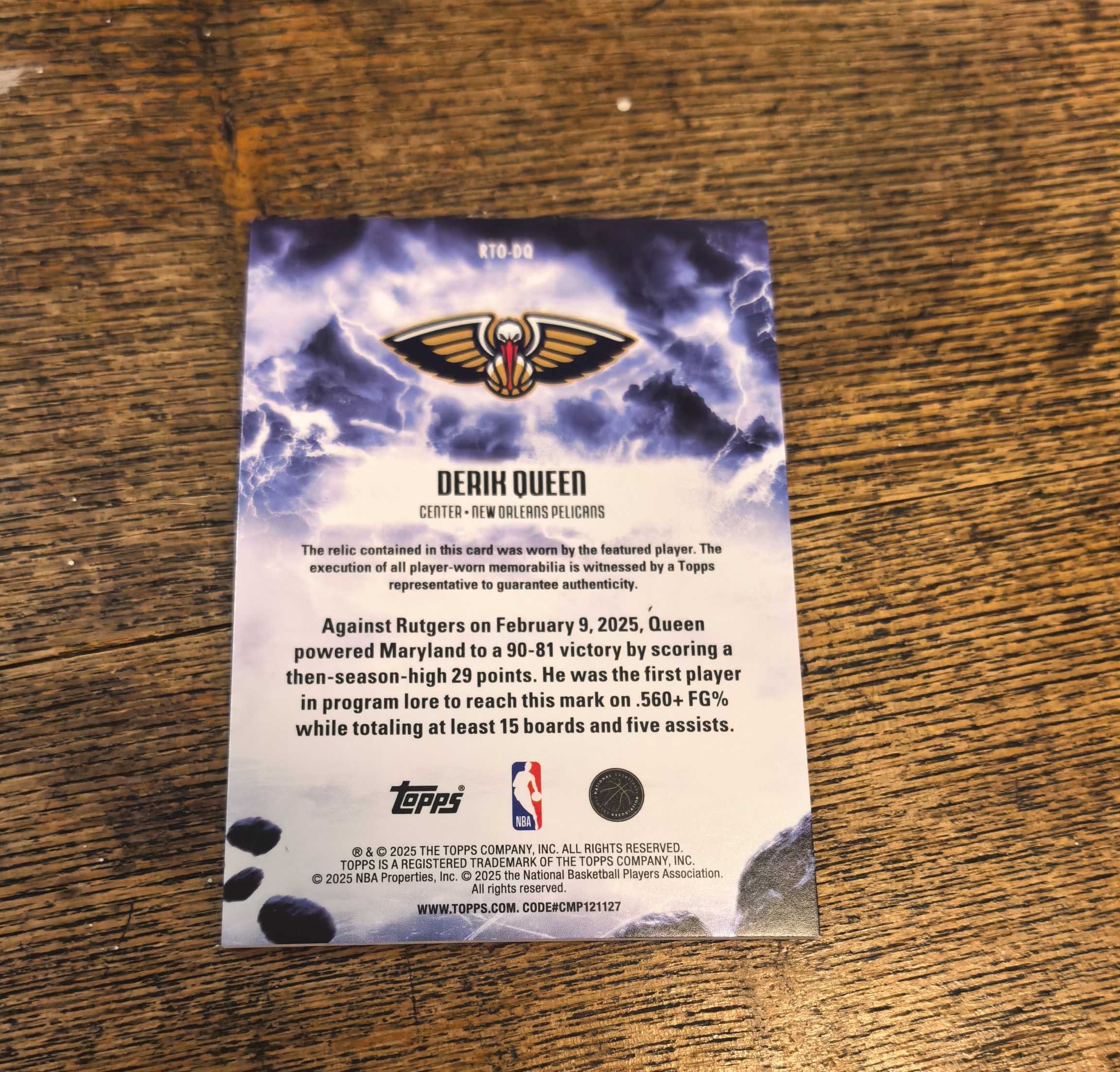 2025-26 Topps Chrome Derik Queen RC 鹈鹕 新秀 三少 德里克 奎因 球衣切割 物料 比赛亲穿 银折 折射
