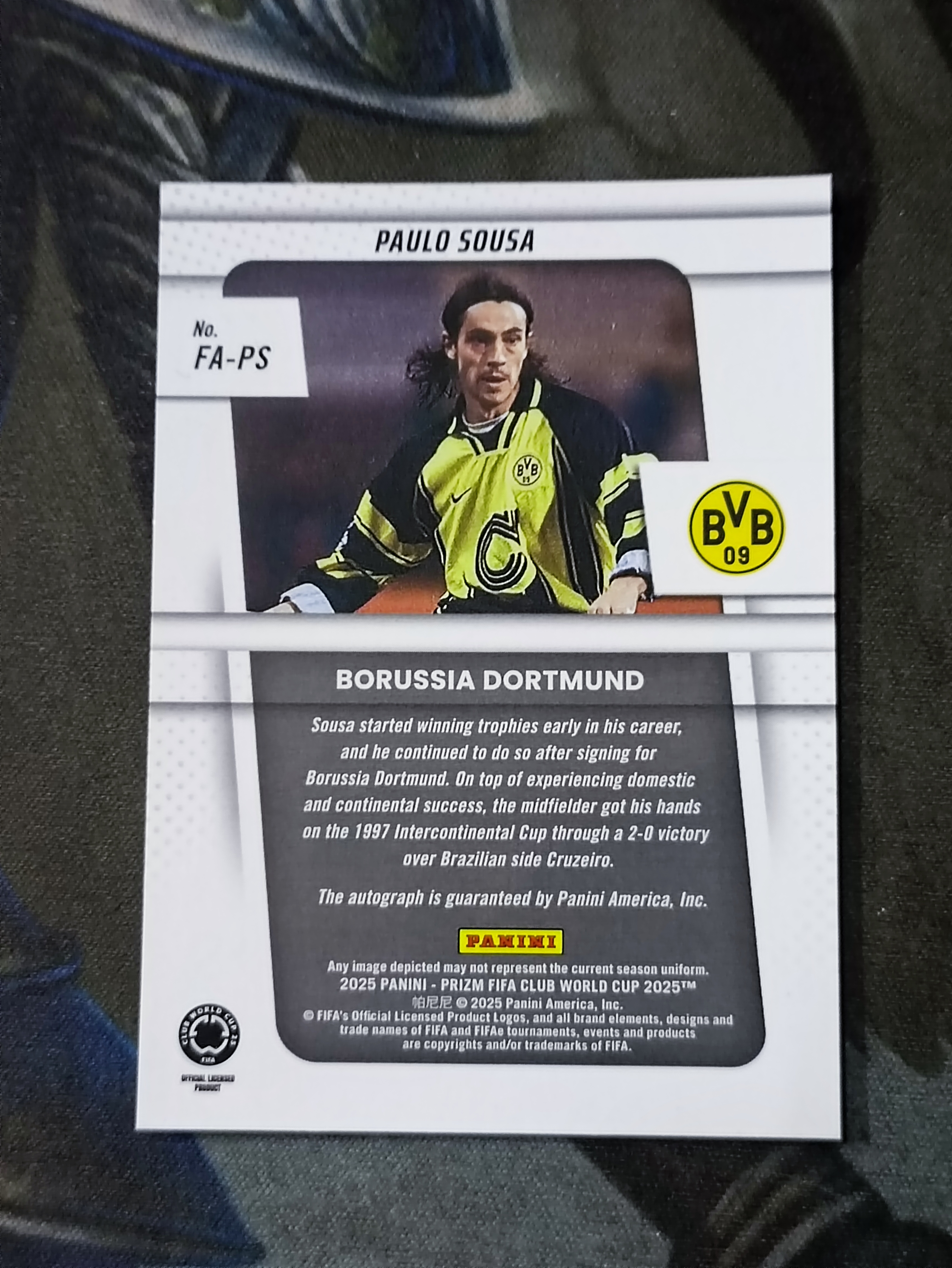 2025 Panini Prizm FIFA CLUB WORLD CUP Paulo Sousa 保罗索萨 亲笔签名签字 世俱杯 德甲 多特蒙德 足球(品墨见大图小瑕)《苏州卡通》J【MJ】