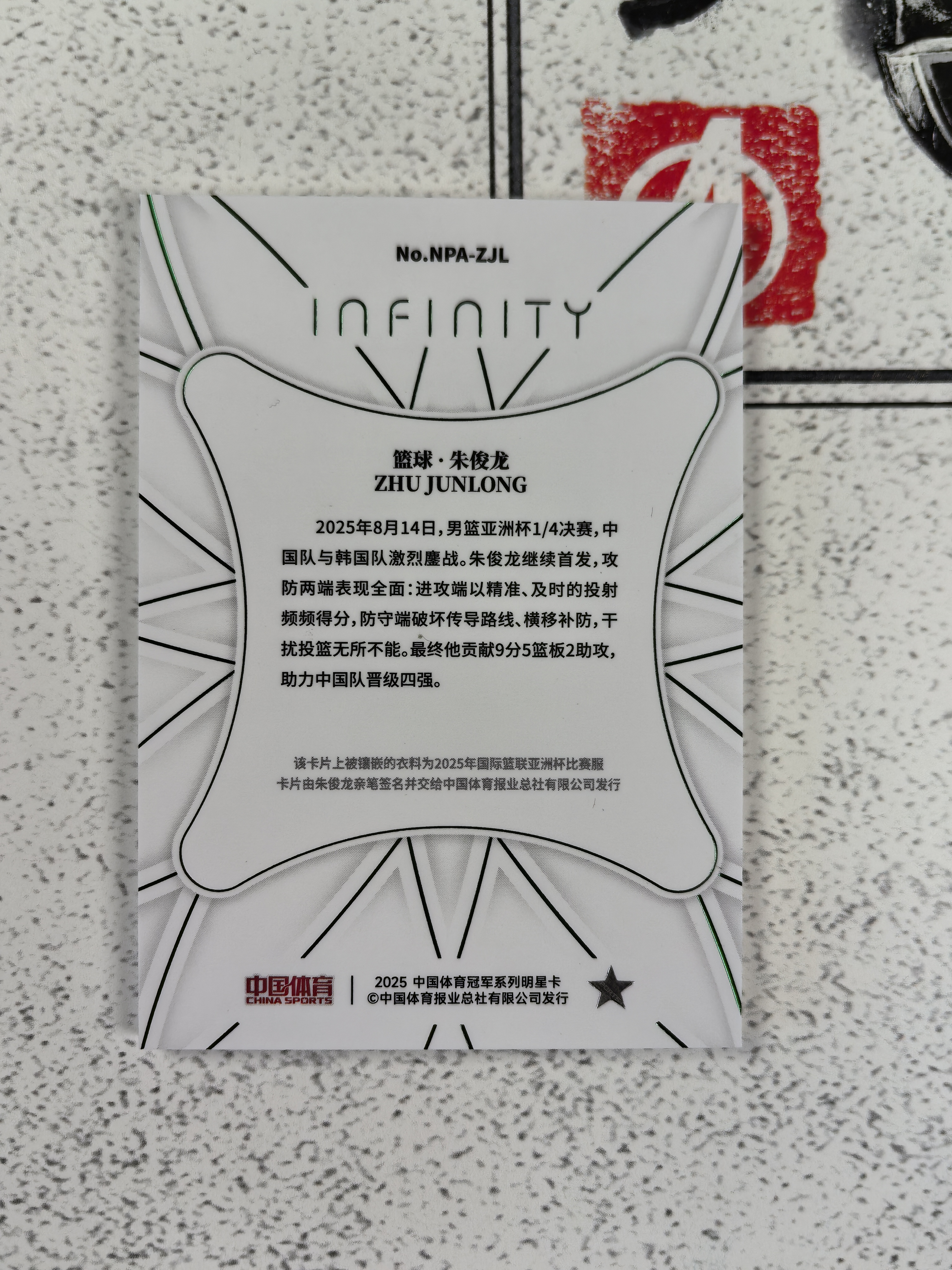2025 奇卡 QICA 中国体育 无限 朱俊龙 FS 5编 签字 卡签 patch 亚洲杯比赛服切割 绿折 超低编 新星签字 盒货 SP 收藏凑套必备 NZ33D 【西门拍卖】