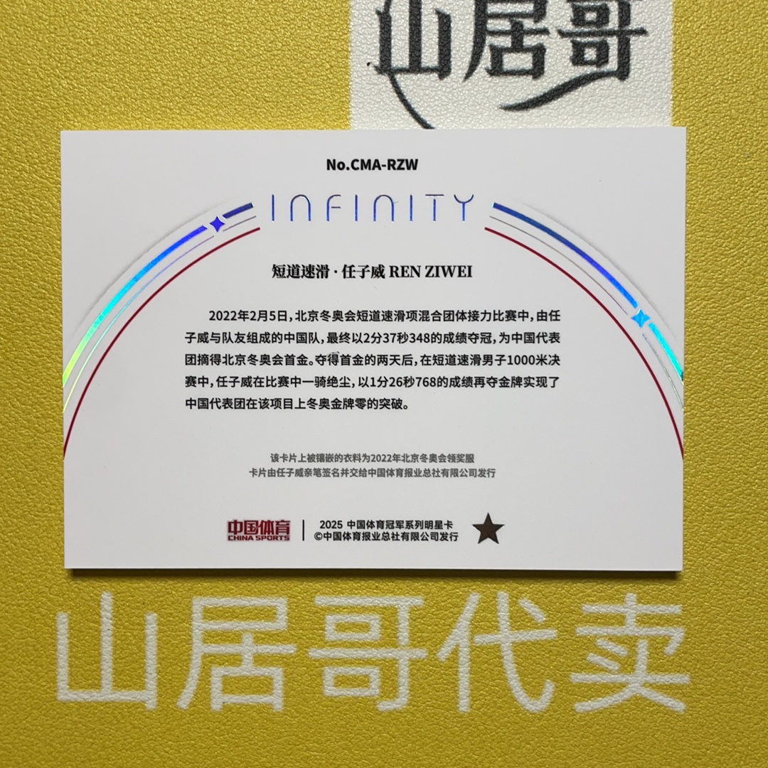 2025 中国体育 中国体育 无限 任子威 中国体育 无限 短道速滑 任子威 5/25编 签字 物料切割2022年北京冬奥会领奖服 贴签 轻印如图 图T 【山居哥代卖】
