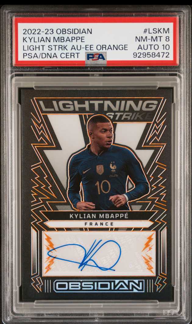 2022-23 Panini OBSIDIAN LIGHTNING STRIKE AUTOGRAPHS Kylian Mbappe 姆巴佩 法国 黑曜石 闪击签 签字 橙平行 75编 皇马