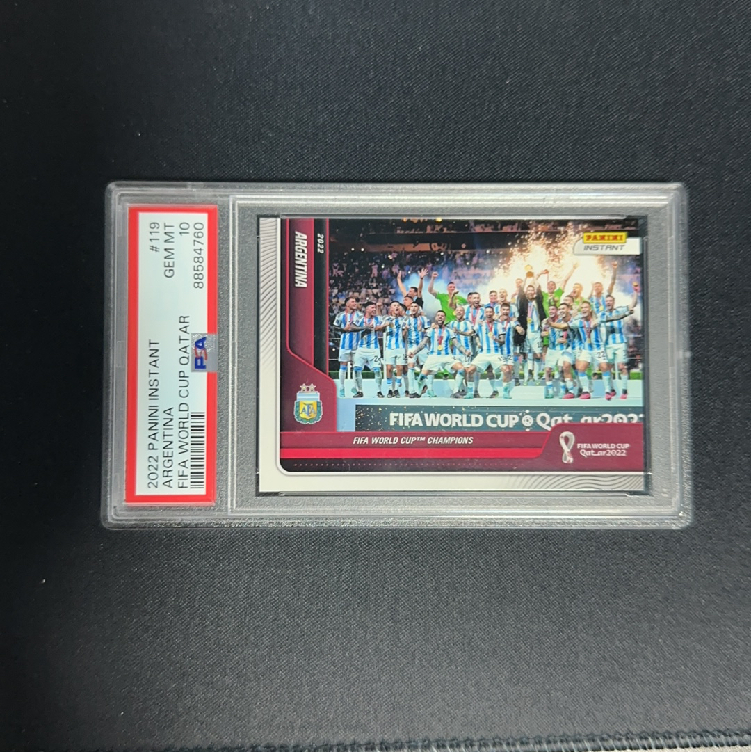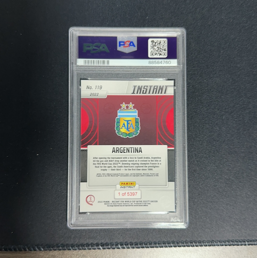 2022 Panini Instant Argentina 卡塔尔世界杯 阿根廷 夺冠庆祝时刻 psa10 pop266 满分 全队庆祝 梅西 球王 劳塔罗 迪巴拉 迪马利亚 大马丁等