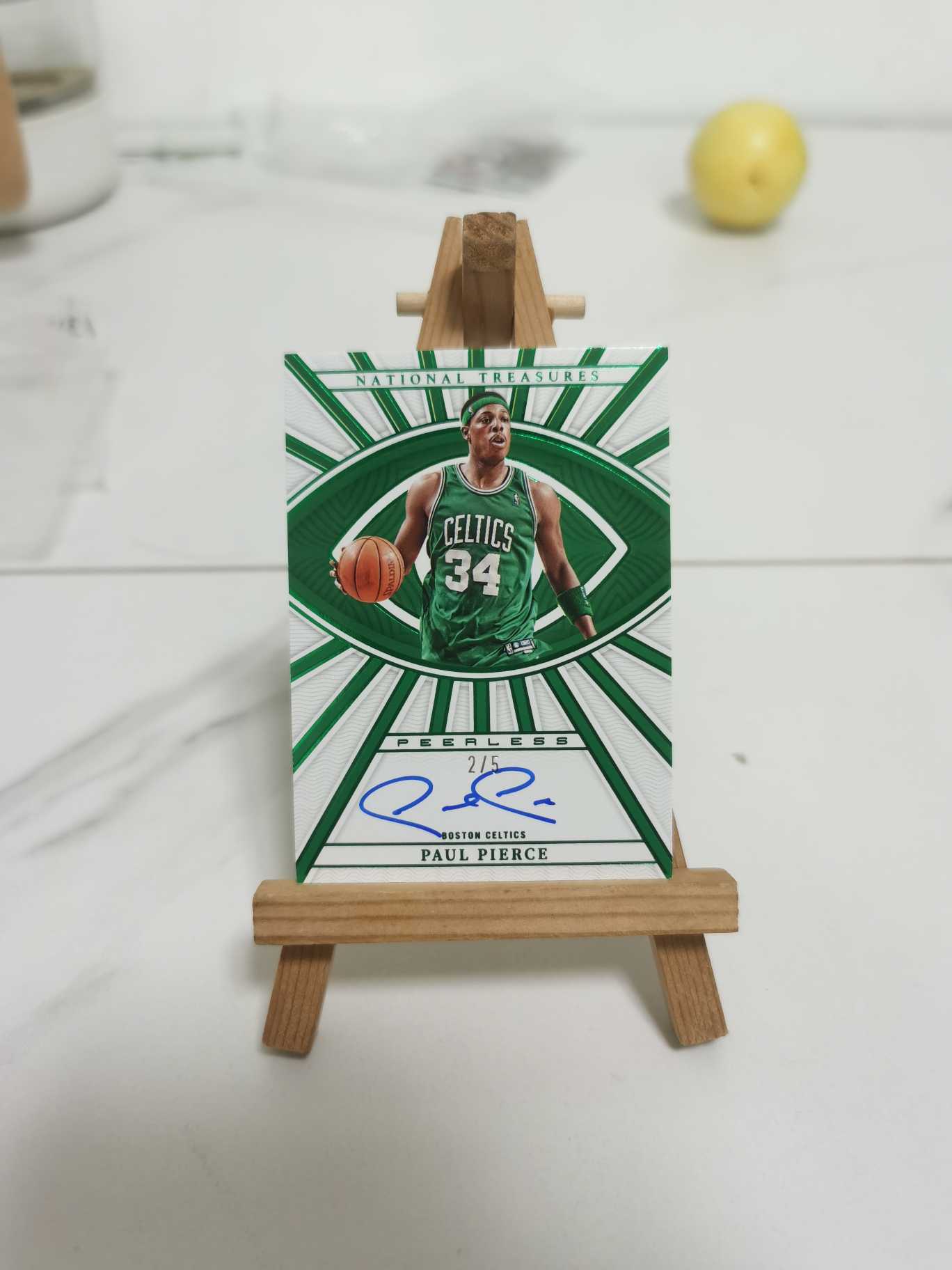 2022-23 Panini National Treasures Paul Pierce 【拖油瓶代卖】国宝 保罗皮尔斯 凯尔特人 2/5编 签字 卡签 绿平行 边角微瑕 凯文加内特雷阿伦队友#一边天