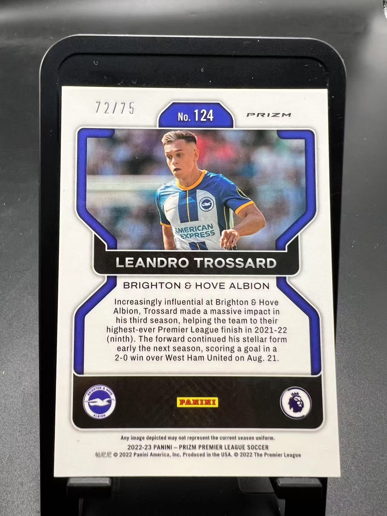 2022-23 Panini Prizm Leandro Trossard 【EC】PZ 英超 莱安德罗 特罗萨德 阿森纳 折射 蓝泡泡折 72/75编 日出61