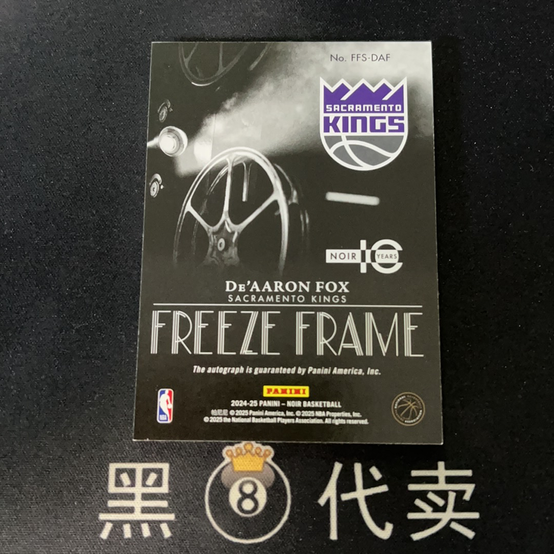 27【黑8代卖】2024-25 Panini Noir 诺尔 De'aaron Fox 达龙 福克斯 小狐狸 签字 卡签 17/25编 卡品如图【努力】