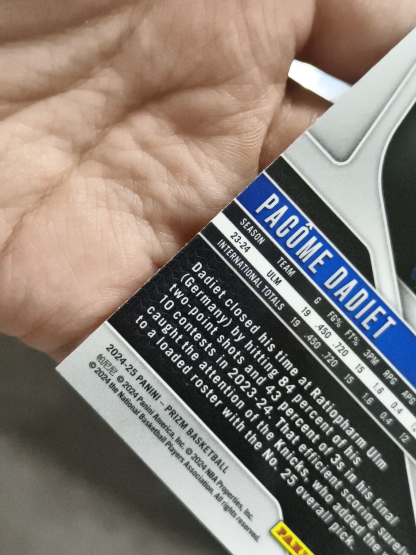 【浩行拍卖 截标预付82%】2024-25 panini prizm pacome dadiet 尼克斯 帕科姆 达迪耶 rc 新秀 银折 折射 瑕疵看图 专收必备「学升」1113K03劉