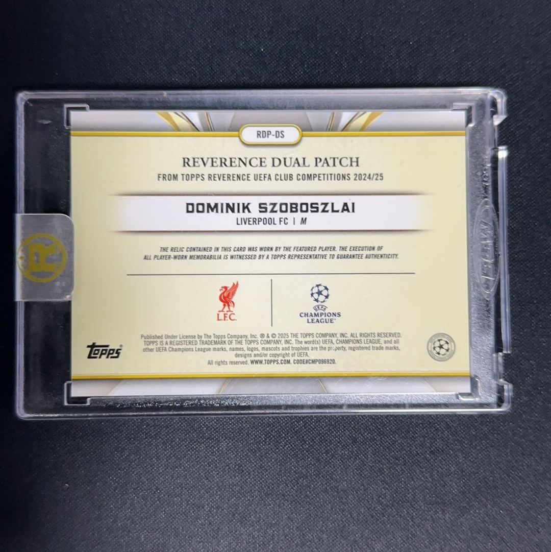 2025 Topps Reverence Dominik Szoboszlai 高端尊耀 索博斯洛伊 1/1 ofo 超暴力队徽切割 双窗物料 patch 利物浦翅膀 简写 原封砖 收藏必备