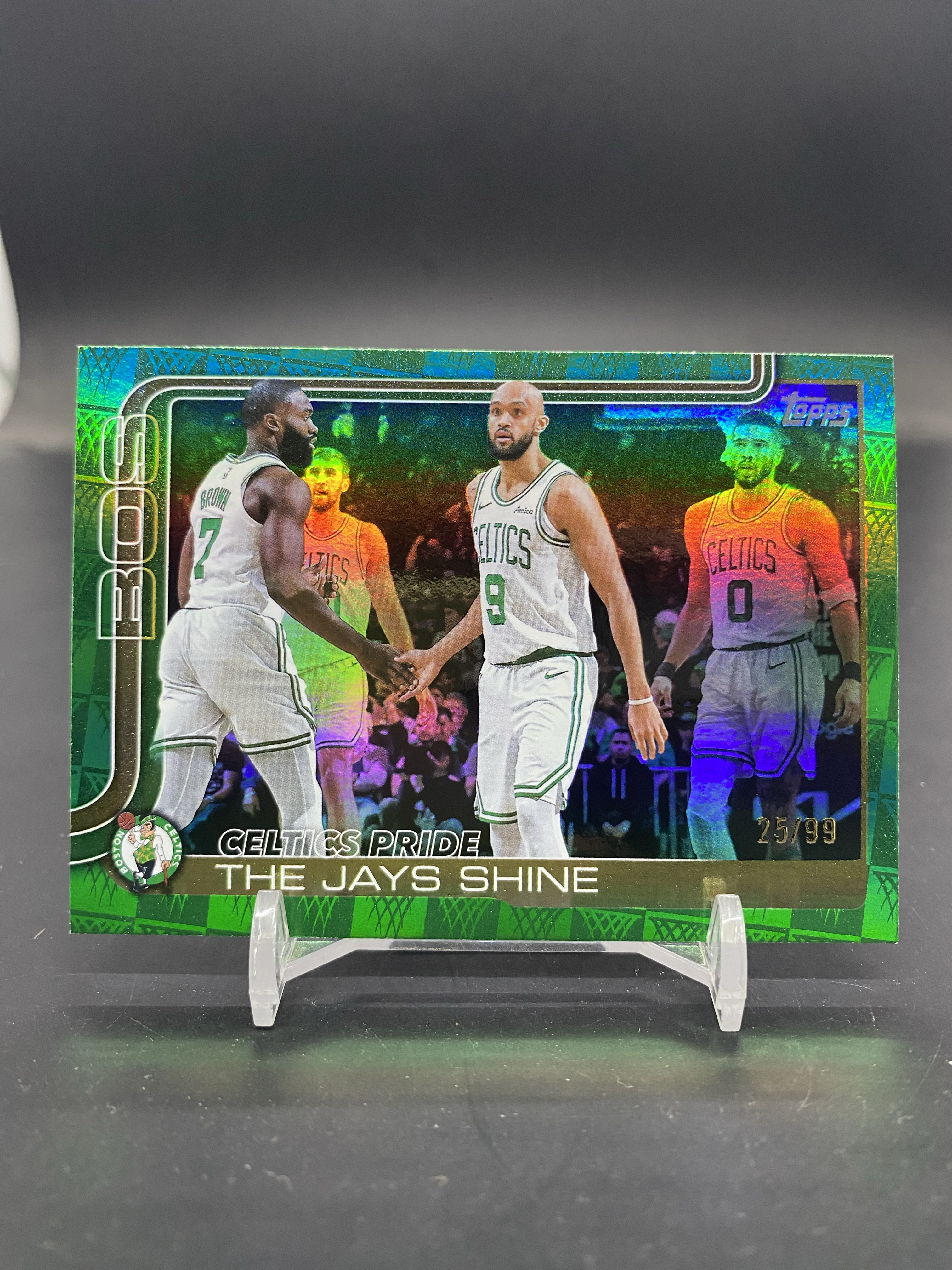 2025 Topps Flagship Jaylen Brown 凯尔特人 杰伦 布朗 杰森 塔图姆 獭兔 25/99编 绿折 The Jays Shine 场边 特卡 折射 微瑕AZ-55「80」