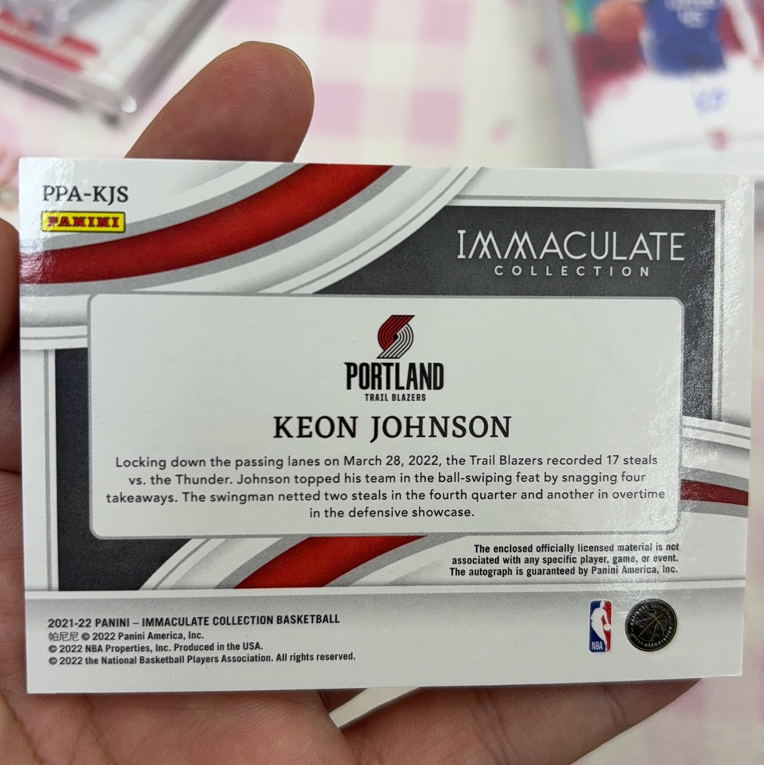 2021-22 Panini Immaculate Keon Johnson RC 开拓者 大窗PPA 基翁 基恩 约翰逊 新秀 rc 镜面 暴力大窗patch 49/50编 专收必备