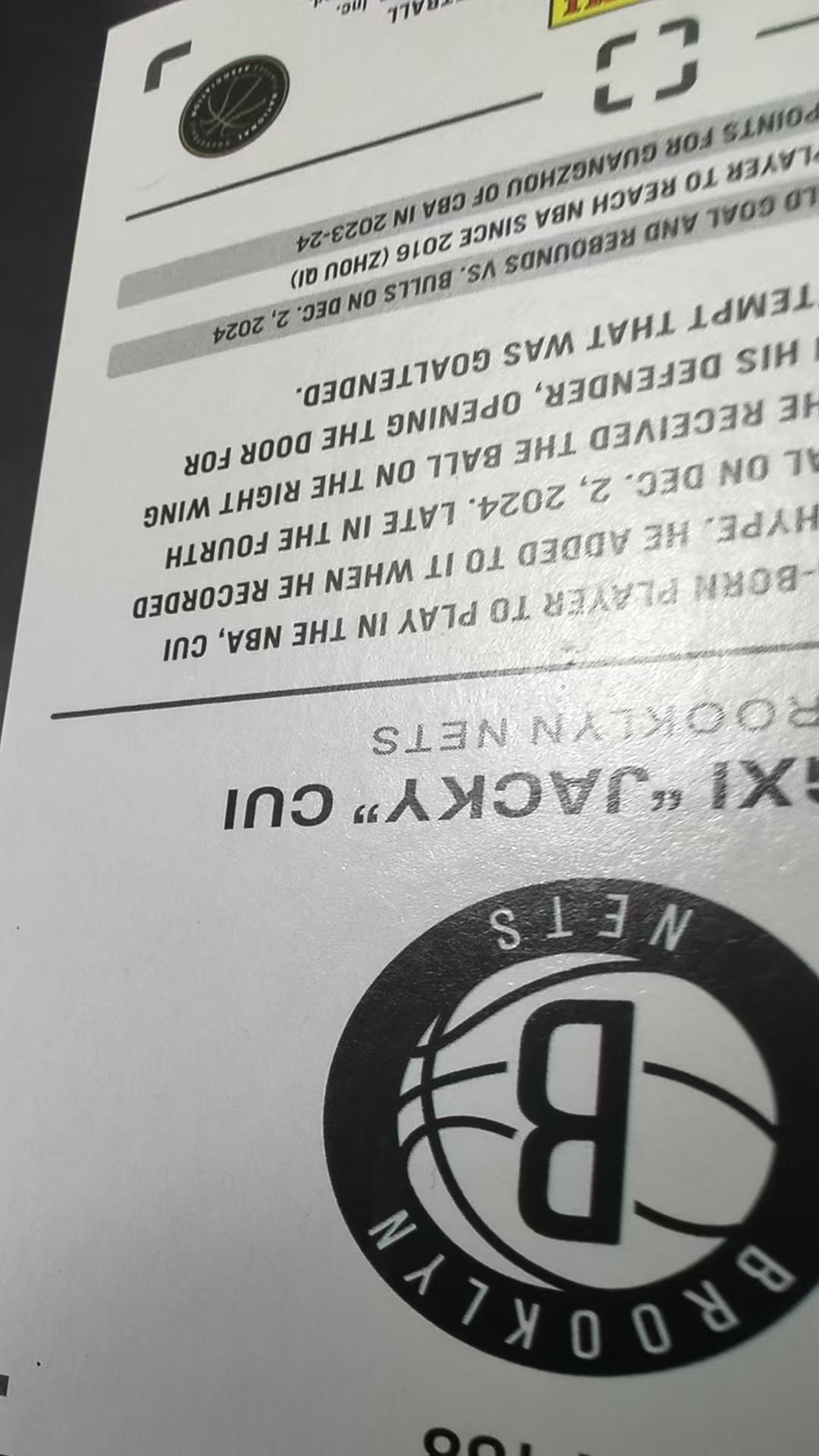 • 卡品以图片展示为准,无特殊标注的瑕疵均视为 “通行品相”(例如:Prizm Optic 系列薄卡的小划痕、国宝系列厚卡 1MM 内的小白边 / 角)。