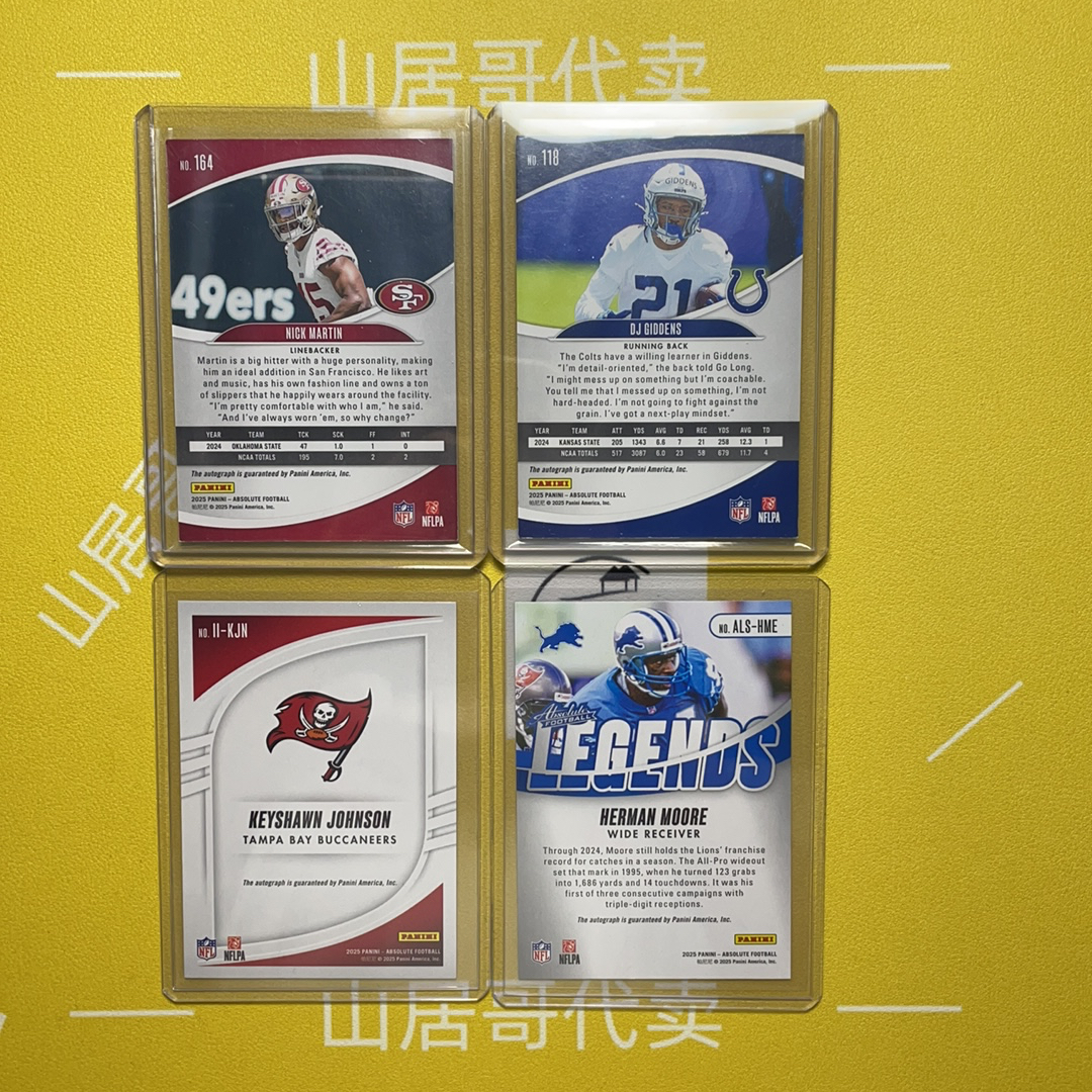 2025 Panini Absolute 四 尼克 马丁 吉登斯 新秀 赫尔曼 摩尔 /75编 凯肖恩 约翰逊 /199编 签字 银折 折射 贴签 lots 4张打包 不包卡品 熊 【山居哥代卖】