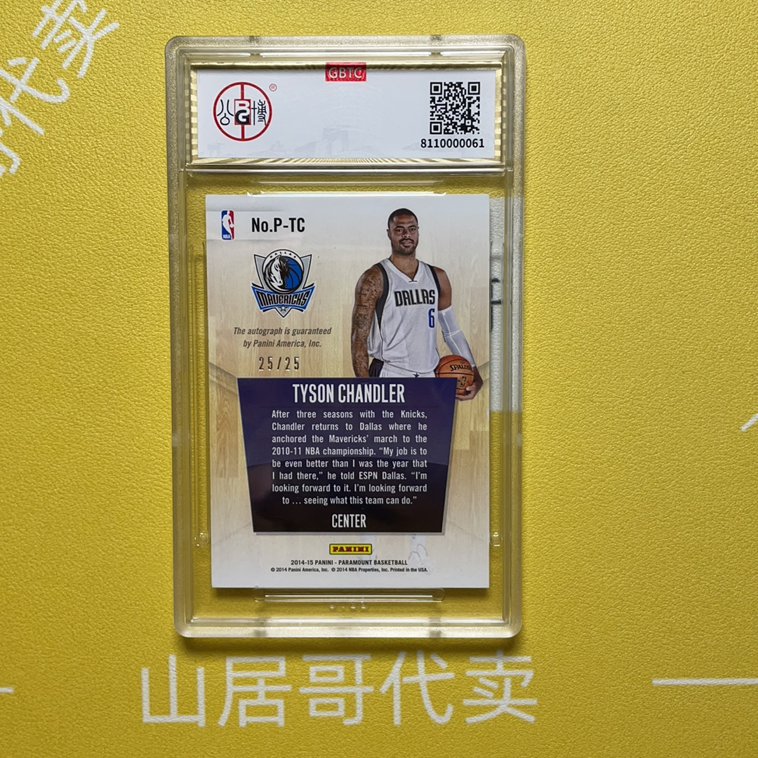 2014-15 Panini Paramount Tyson Chandler 独行侠 泰森 钱德勒 25/25编 尾编 签字 卡签 GBTC鉴真 卡壳如图 肉 【山居哥代卖】
