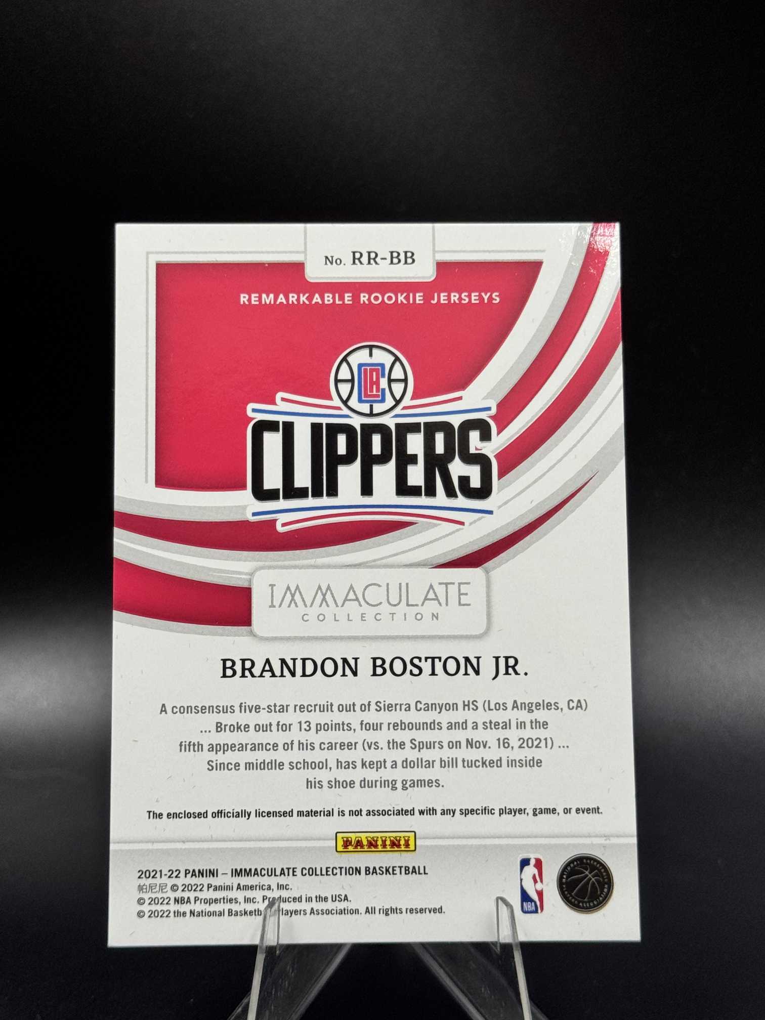 2021-22 Panini Immaculate Brandon Boston Jr. 【小桃气拍卖】IMM 小布兰登 波士顿 新秀 RC 球衣物料切割 /99编 快船 卡品如图 V530