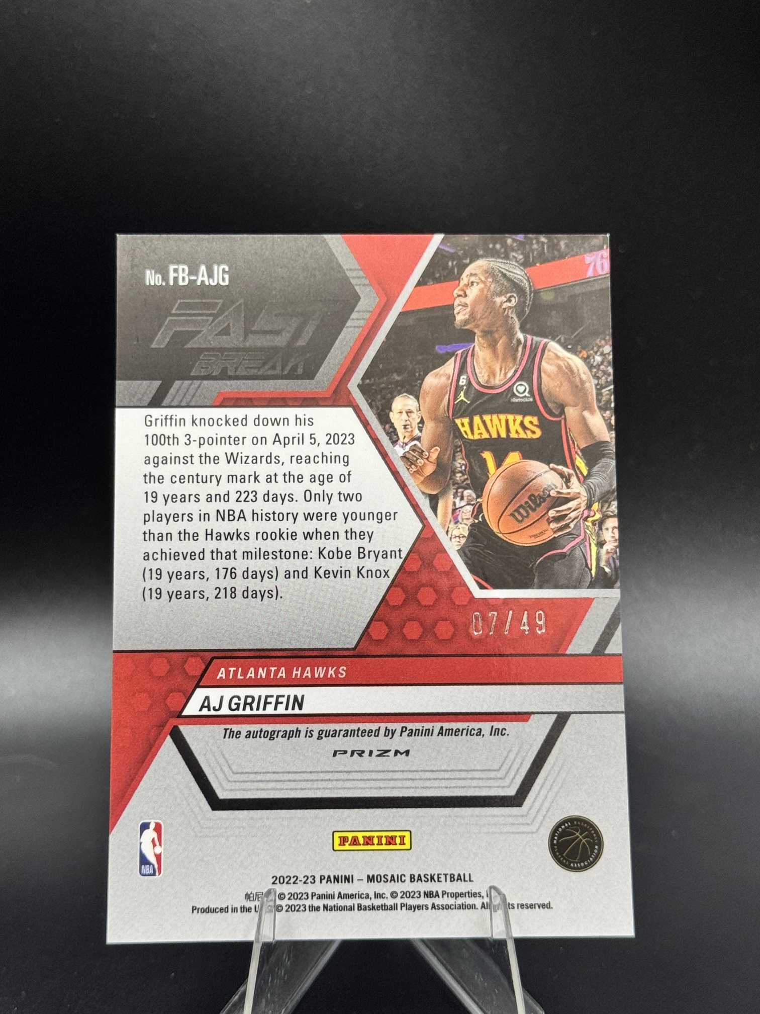 2022-23 Panini Mosaic AJ Griffin 【小桃气拍卖】马赛克 AJ 格里芬 新秀 RC 签字 /49编 红泡泡折 折射 老鹰 卡品如图 V530