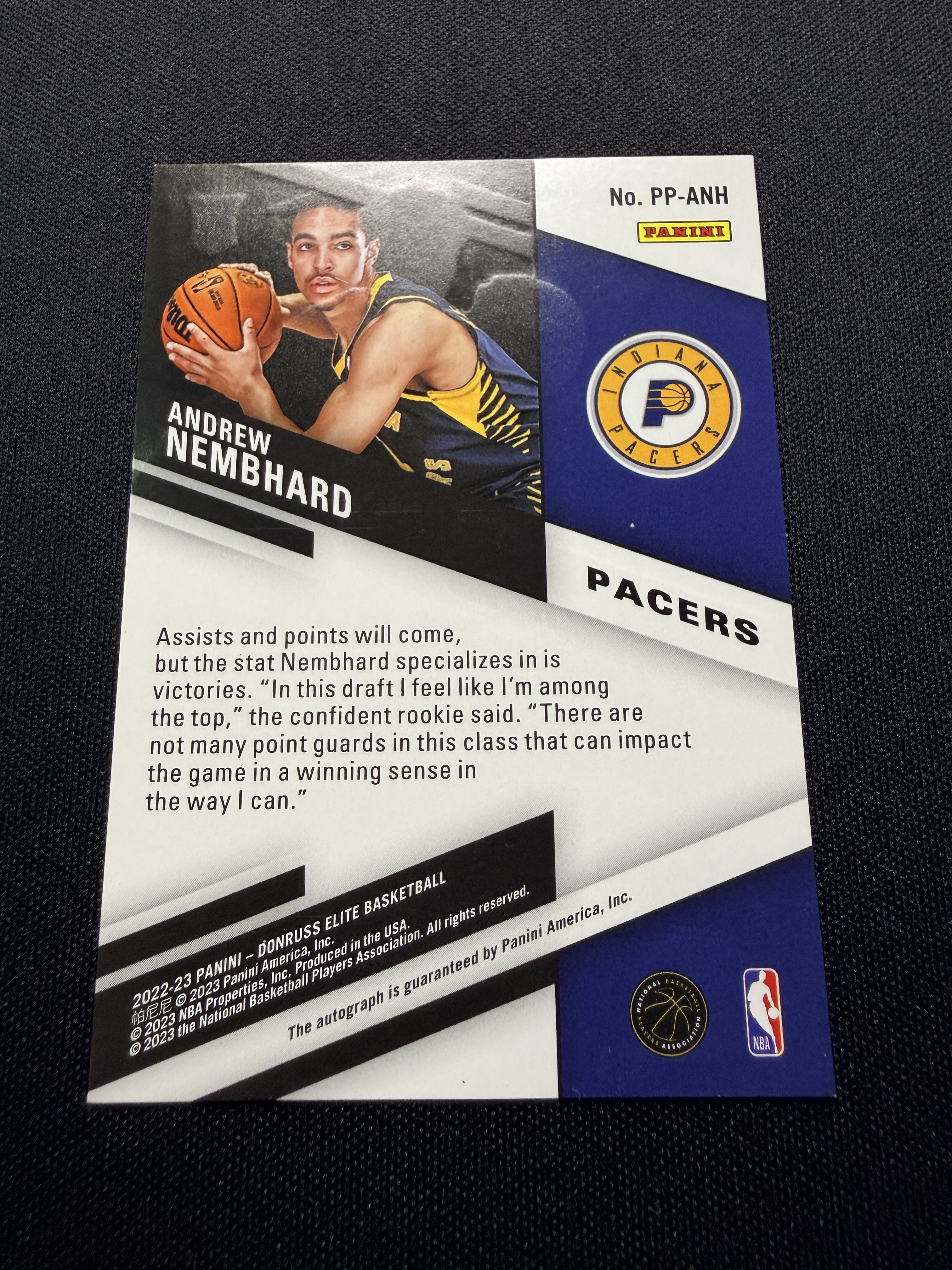2022-23 Panini Elite Andrew Nembhard RC 安德鲁 内姆布哈德 新秀 rc 签字 卡签 精英 系列 步行者 主力 控卫 新秀年 卡品如图