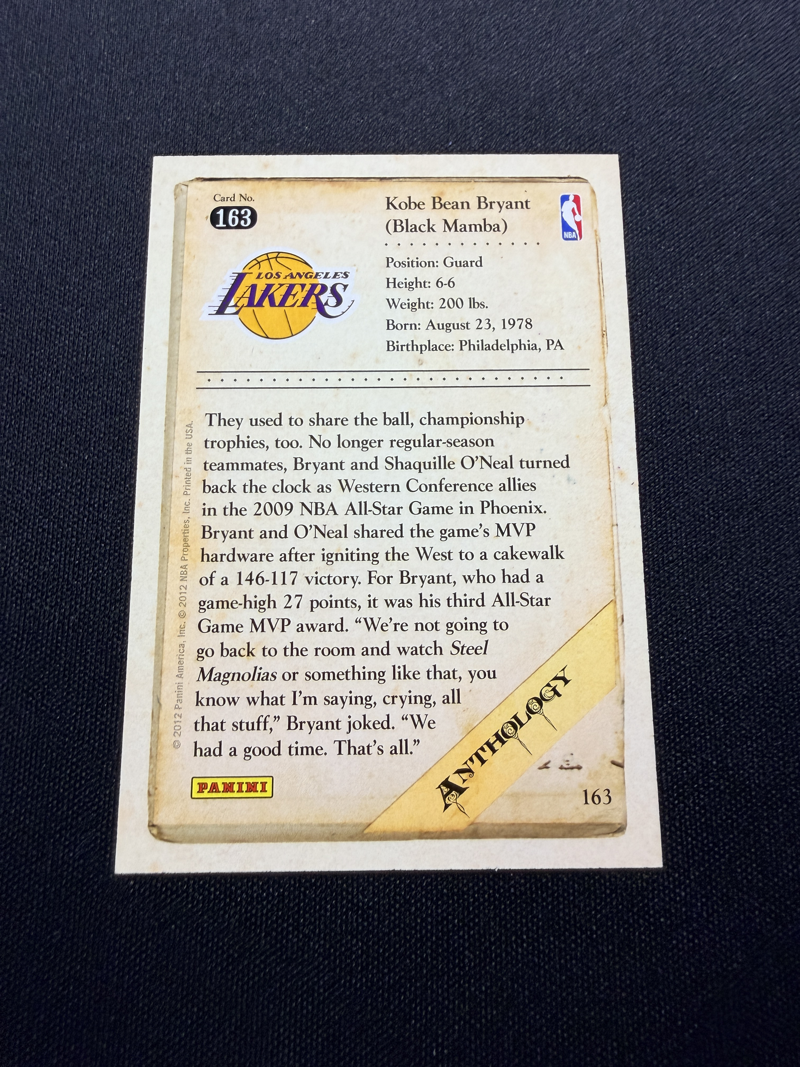 2012 Panini NBA Kobe Bryant 湖人 科比 布莱恩特 黑曼巴 老大 全明星上篮 科比补偿包 凑套 收藏必备