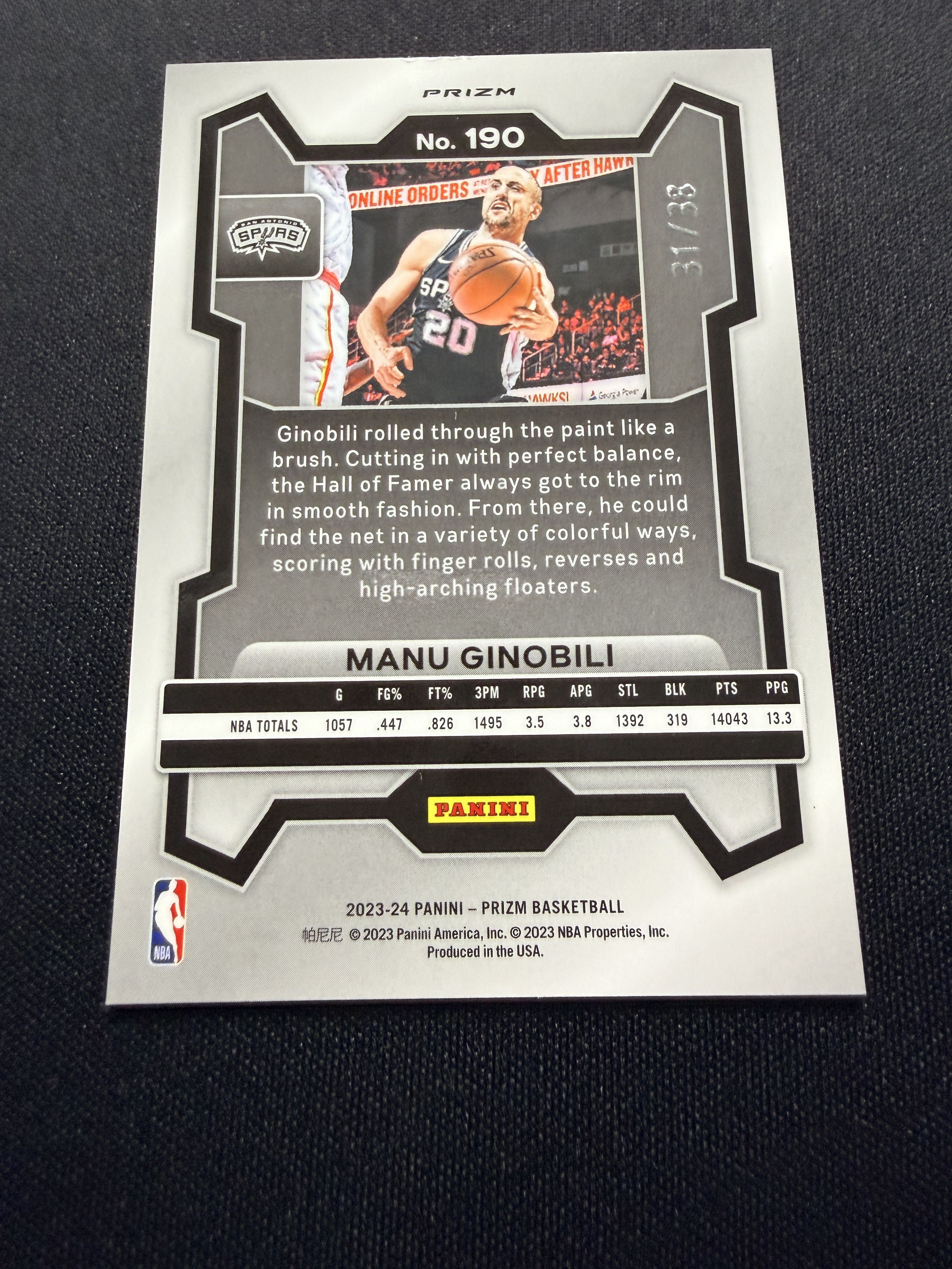 2023-24 Panini Prizm Manu Ginobili PZ 马刺 马努 吉诺比利 折射 白波纹 31/38编 收藏必备