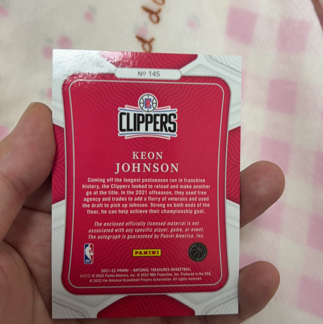 2021-22 Panini National Treasures Keon Johnson RC 篮网 基翁 约翰逊 基恩 约翰逊 9/25编 国宝正RPA 卡签 最近发挥炸裂 场均20