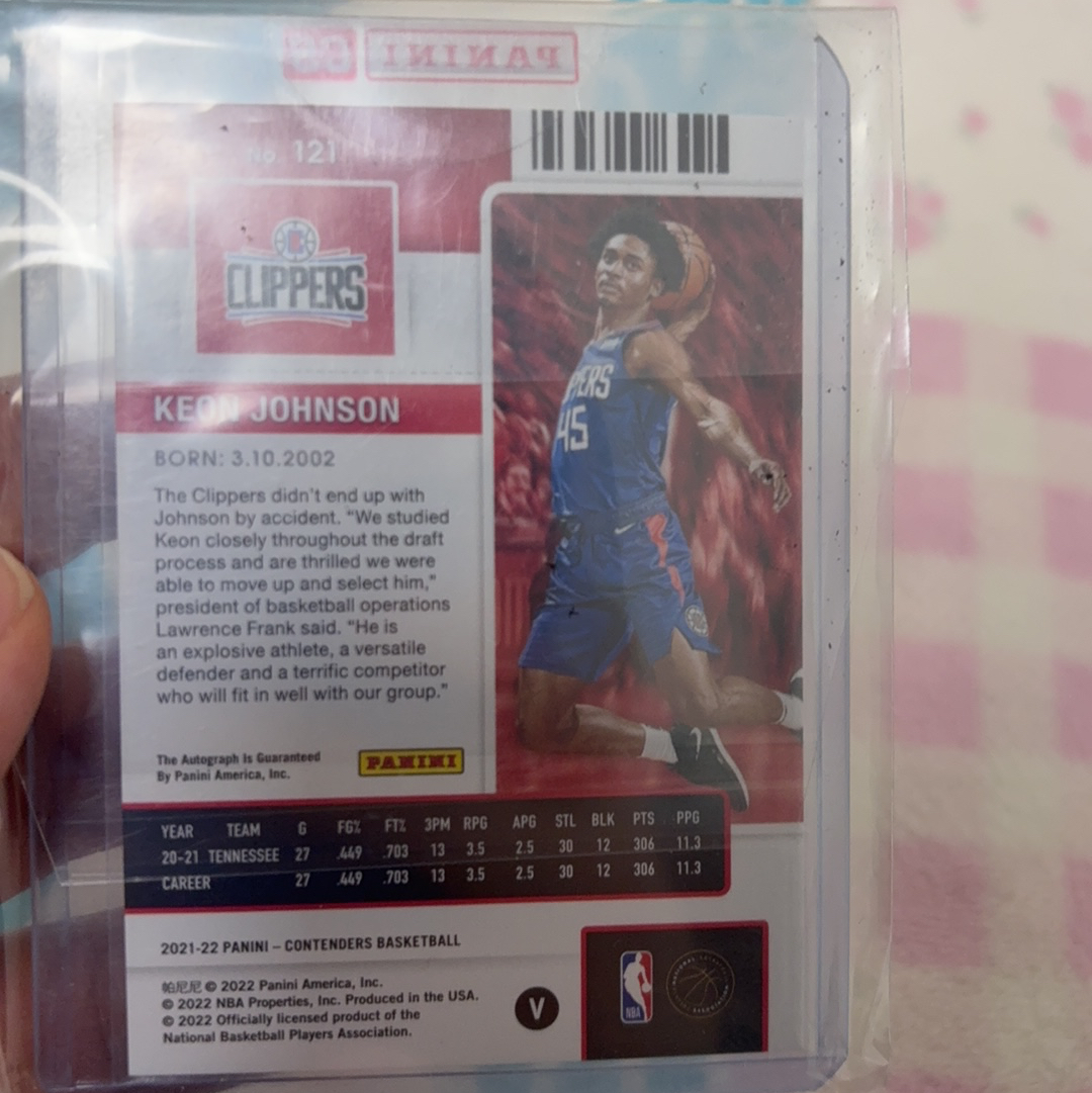 2021-22 Panini Contenders Optic Keon Johnson RC 开拓者 基翁 基恩 约翰逊 新秀 球票 签字 卡签 介绍签 专收必备 原封贴