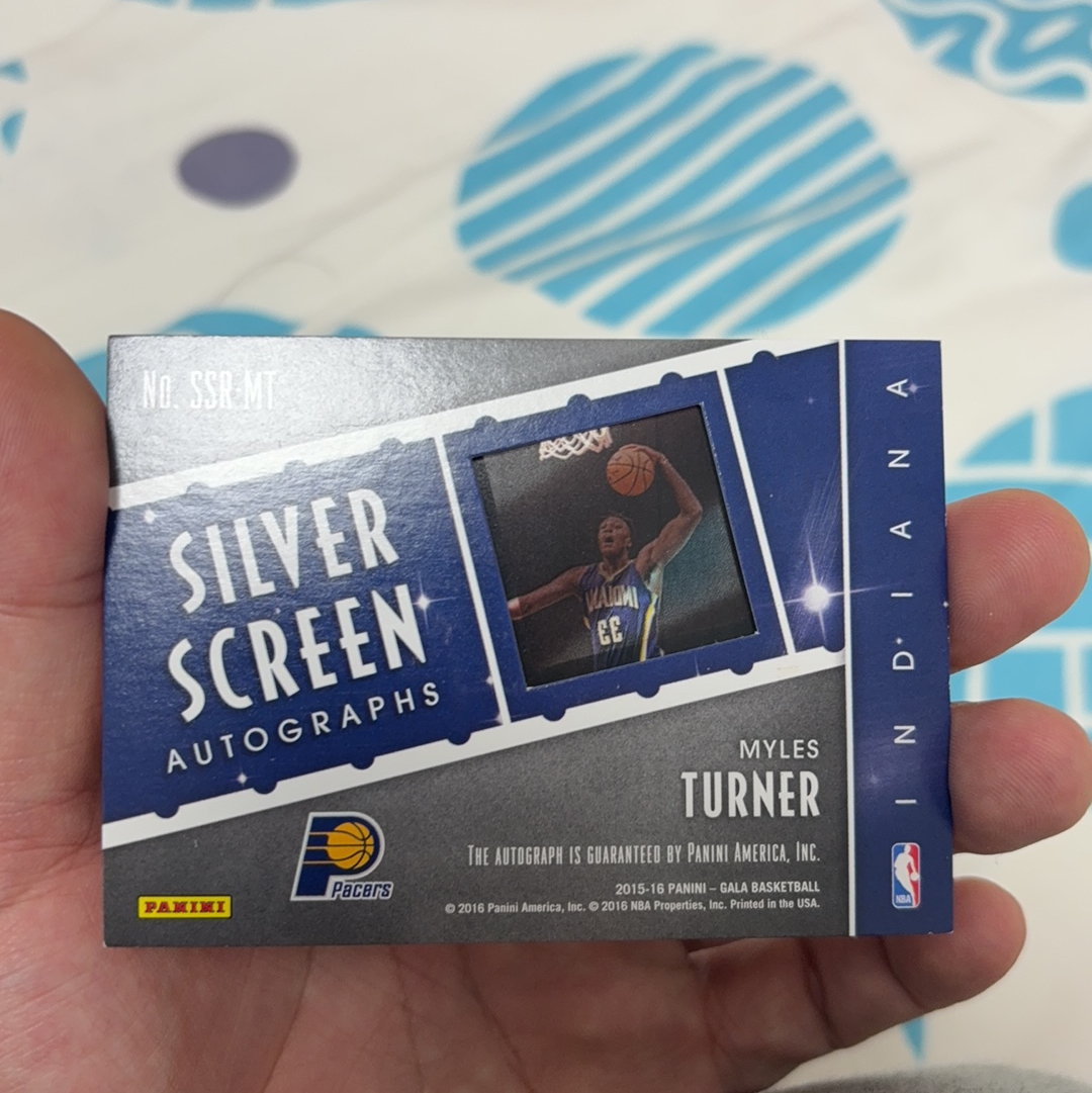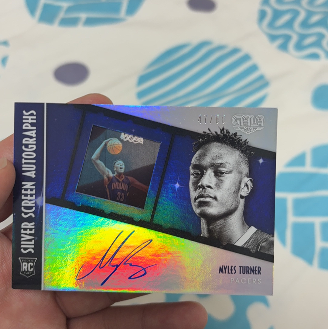 2015-16 Panini Gala Myles Turner RC 新秀 RC 篮球 迈尔斯 特纳 47/60编Silver Screen银幕胶片 卡签 签字 联手字母哥 夺冠