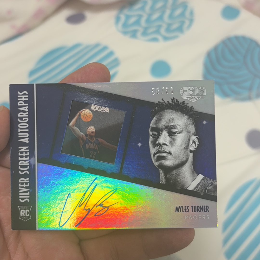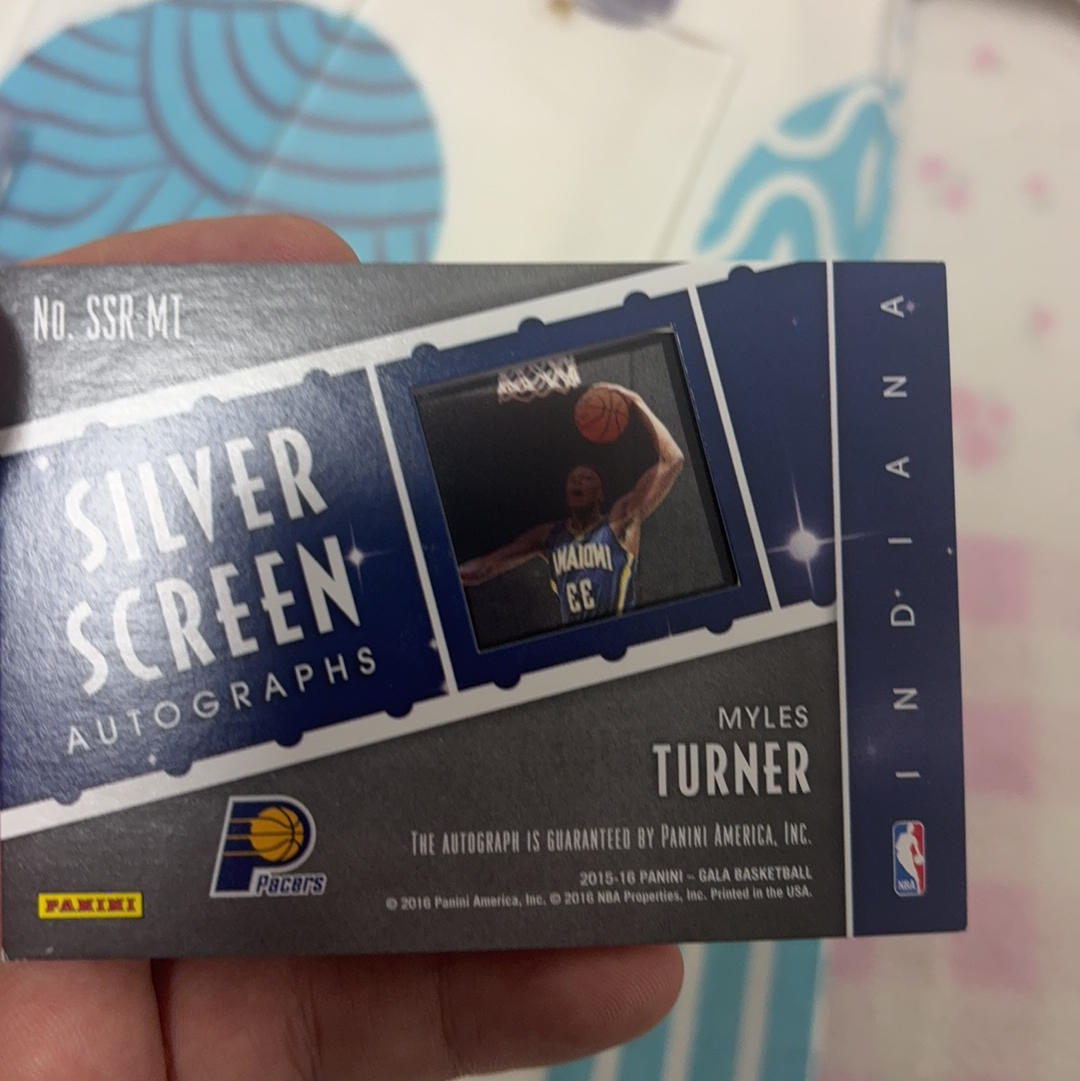 2015-16 Panini Gala Myles Turner RC 新秀 RC 篮球 迈尔斯 特纳 58/60编Silver Screen银幕胶片 卡签 签字 联手字母哥 夺冠