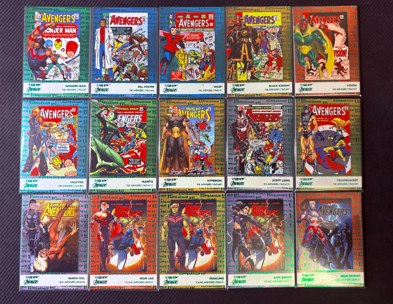 2022 Fleer Marvel (MCU) Avengers 漫威 复仇者联盟 厚卡 初登特卡 绿平行 1-15全套 齐套 不保卡品收藏凑套必备