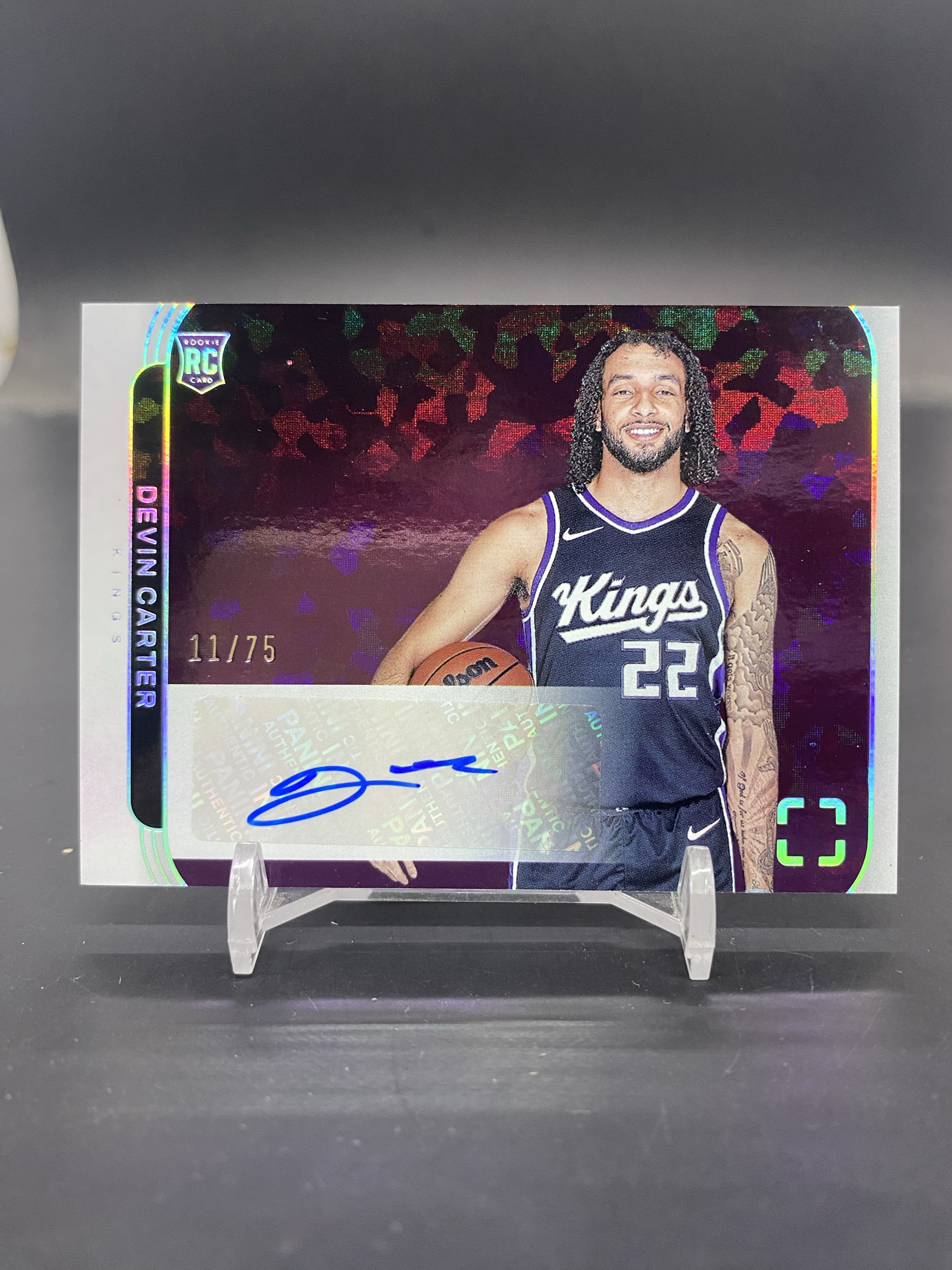 2024-25 Panini PaniniPhotoGenicNBA Devin Carter RC 上镜 国王 新秀 德文 卡特 11/75编 碎冰折 签字 签名 折射 瑕疵如图38「80」