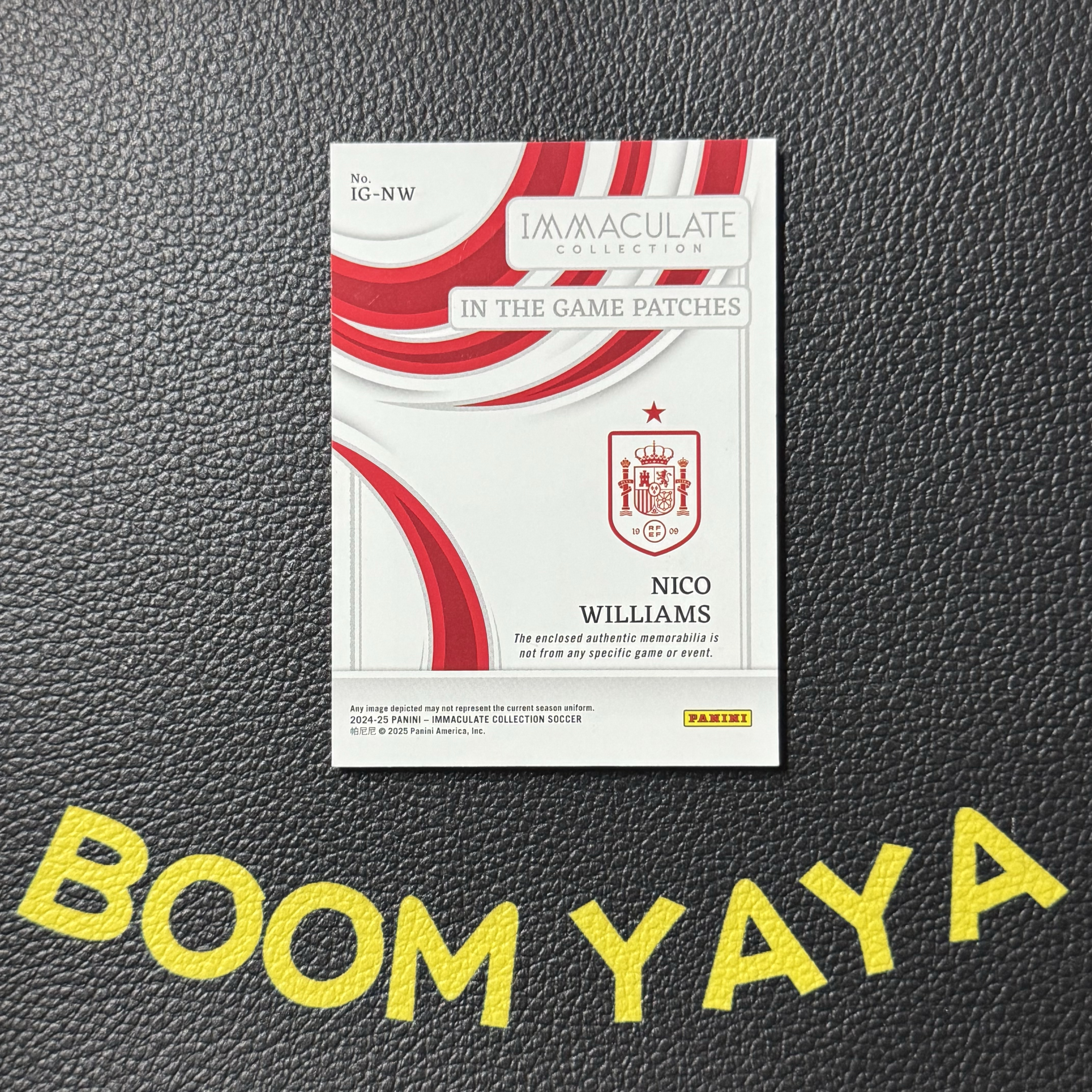 2024-25 Panini Immaculate Nico Williams 【Boom YaYa】西班牙 尼科 威廉姆斯 爱咪咪 球衣 物料切割 6/25编 默认微瑕 不累计 不到付