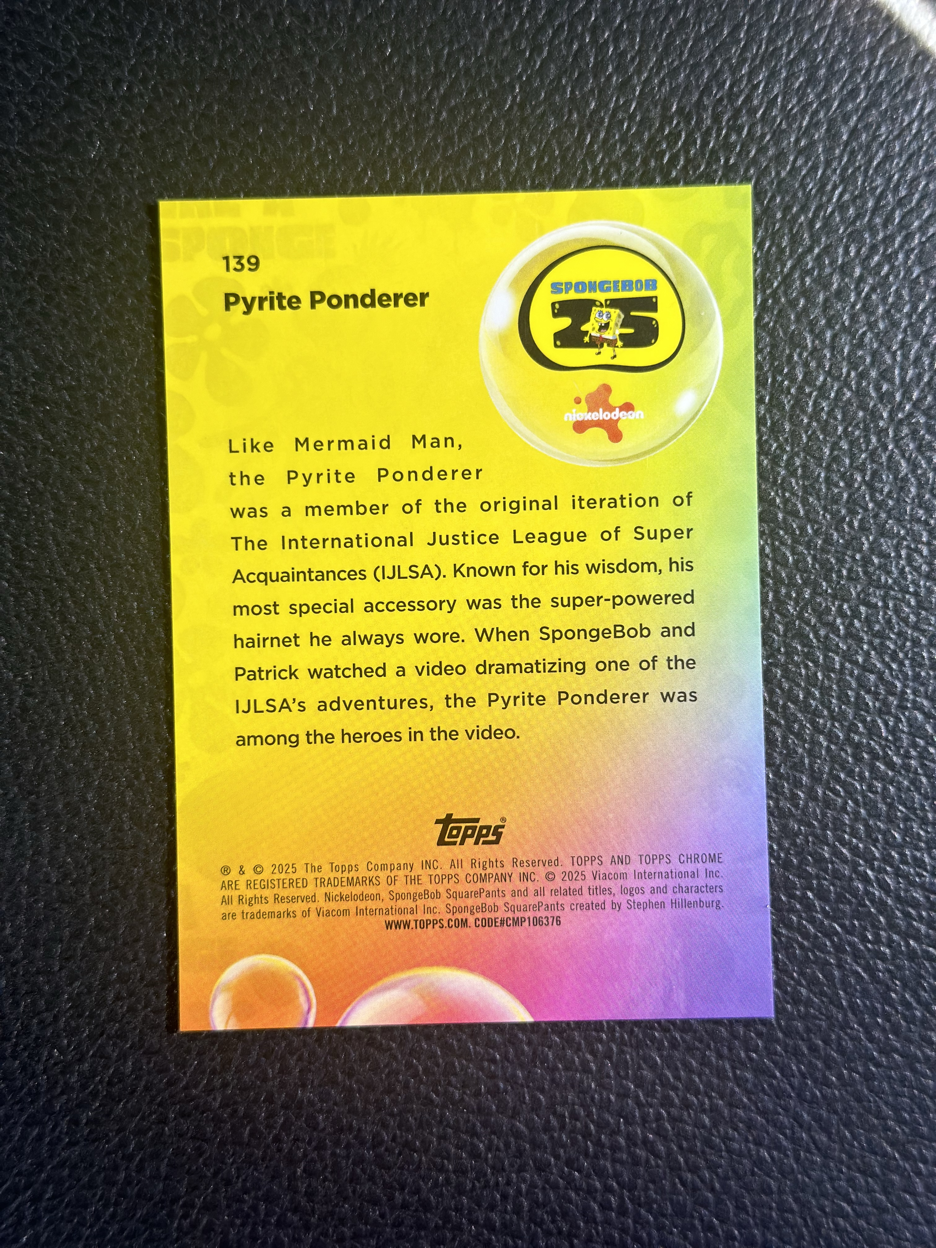 2025 Topps Chrome Spongebob Sapphire 海绵宝宝元年蓝宝石 Kacey拍卖 海绵宝宝 ponderer黄铁沉思者 3/25编橙碎冰折 全网首张超好看收藏必备多哥品如图