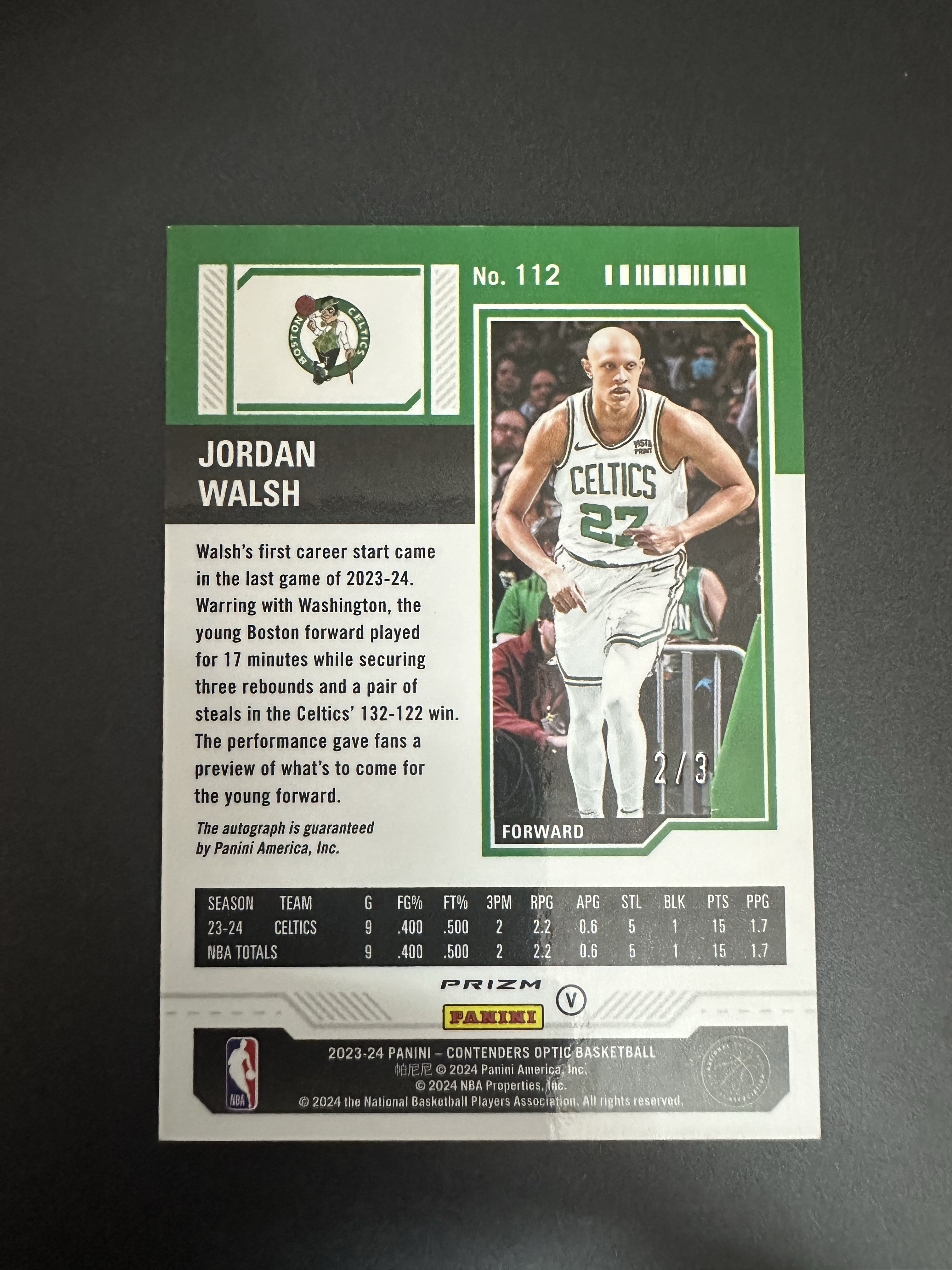2023-24 Panini Contenders Optic Jordan Walsh RC 球票OP 凯尔特人 新秀 乔丹 沃尔什 签字 卡签 变化版 黑折 低编 2/3编 轻印如图 介意勿拍