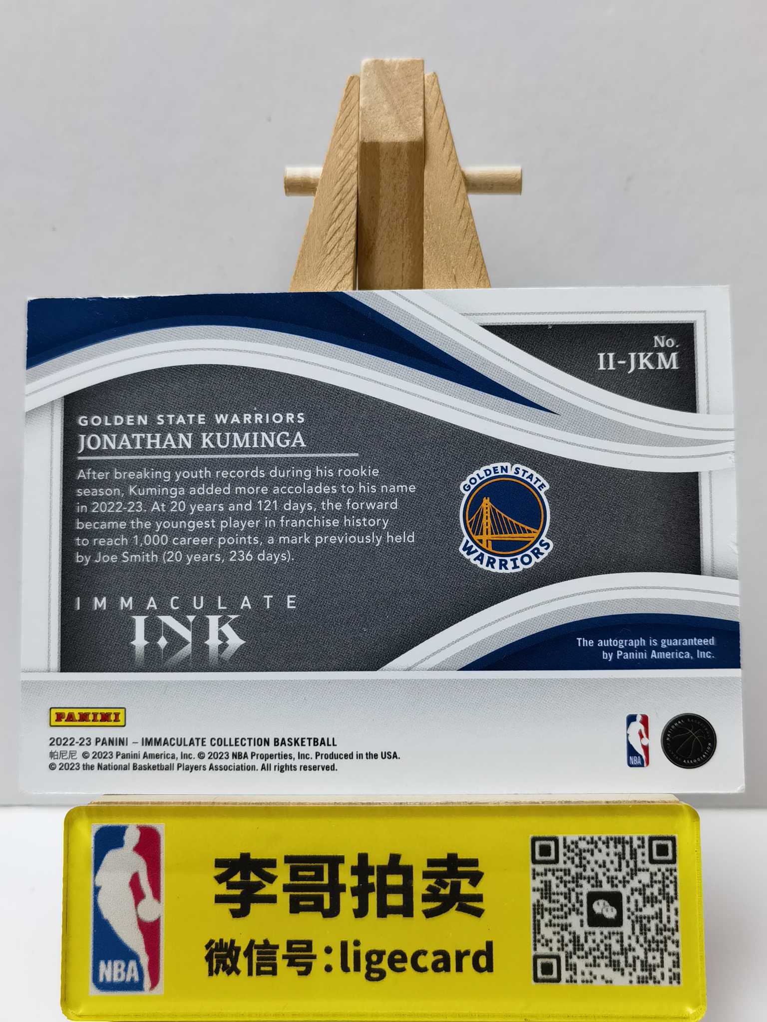 2022-23 Panini Immaculate Jonathan Kuminga 【李哥代卖】爱咪咪 乔纳森库明加 卡签签字 99编 ink 勇士 卡边破损折角 zLe1115