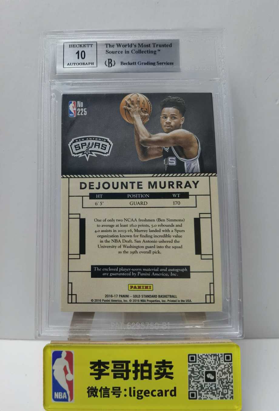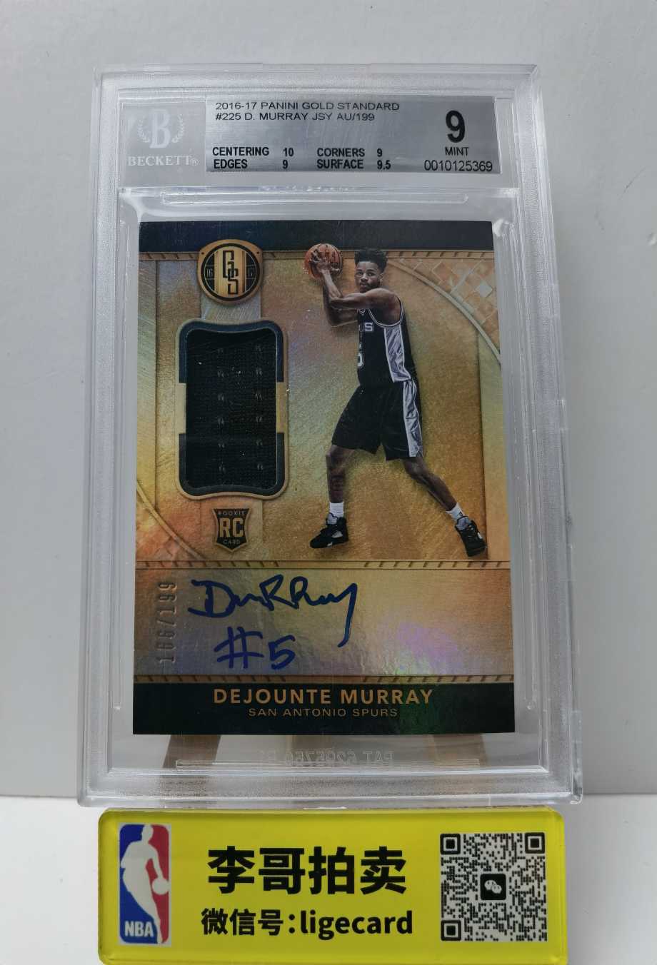 2016-17 Panini Gold Standard Dejounte Murray 【李哥代卖】金砖 德章泰穆雷 199编 RJA RC新秀 卡签签字 物料 BGS评级9分 马刺 红尘大飞1115