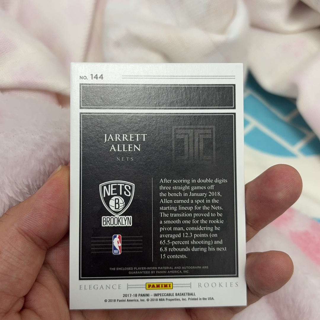 2017-18 Panini Impeccable Jarrett Allen RC RC 小真金 1/10编 首编 1/1 RPA 贾莱特 阿伦 艾伦 骑士 暴力切割 签字 卡签 季后赛 投资必备