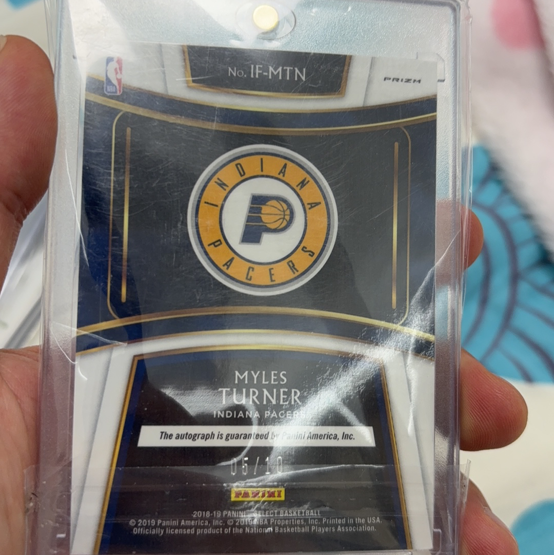2018-19 Panini Select Myles Turner 迈尔斯 特纳 步行者 签字 卡签 超低编 10 5/10编 金格子折 联手字母哥 夺冠
