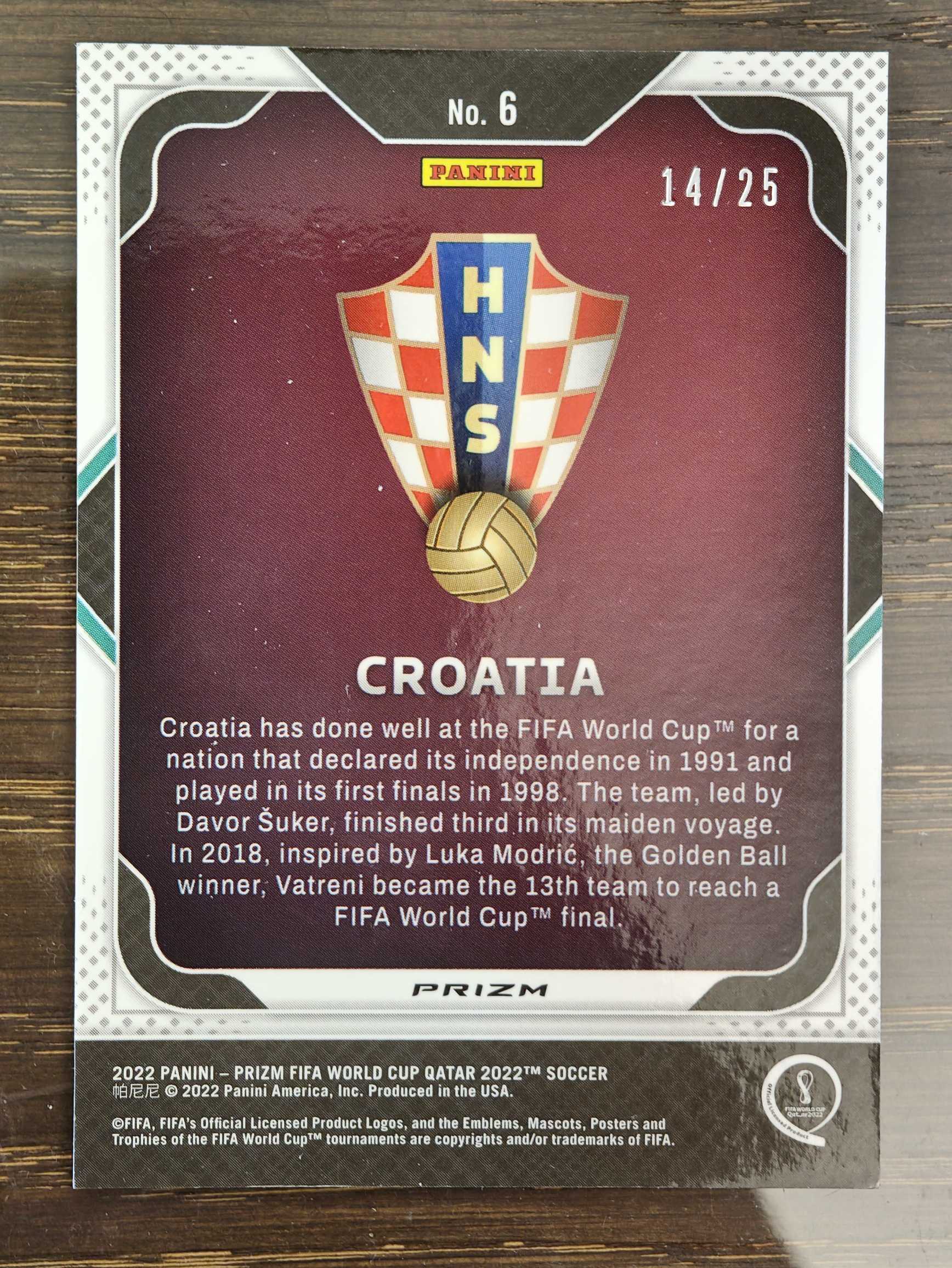 2022 Panini Prizm Fifa World Cup Croatia croatia 克罗地亚 队徽 PZ 橙折 25编 莫德里奇 佩里西奇 格瓦迪奥尔 格子军团