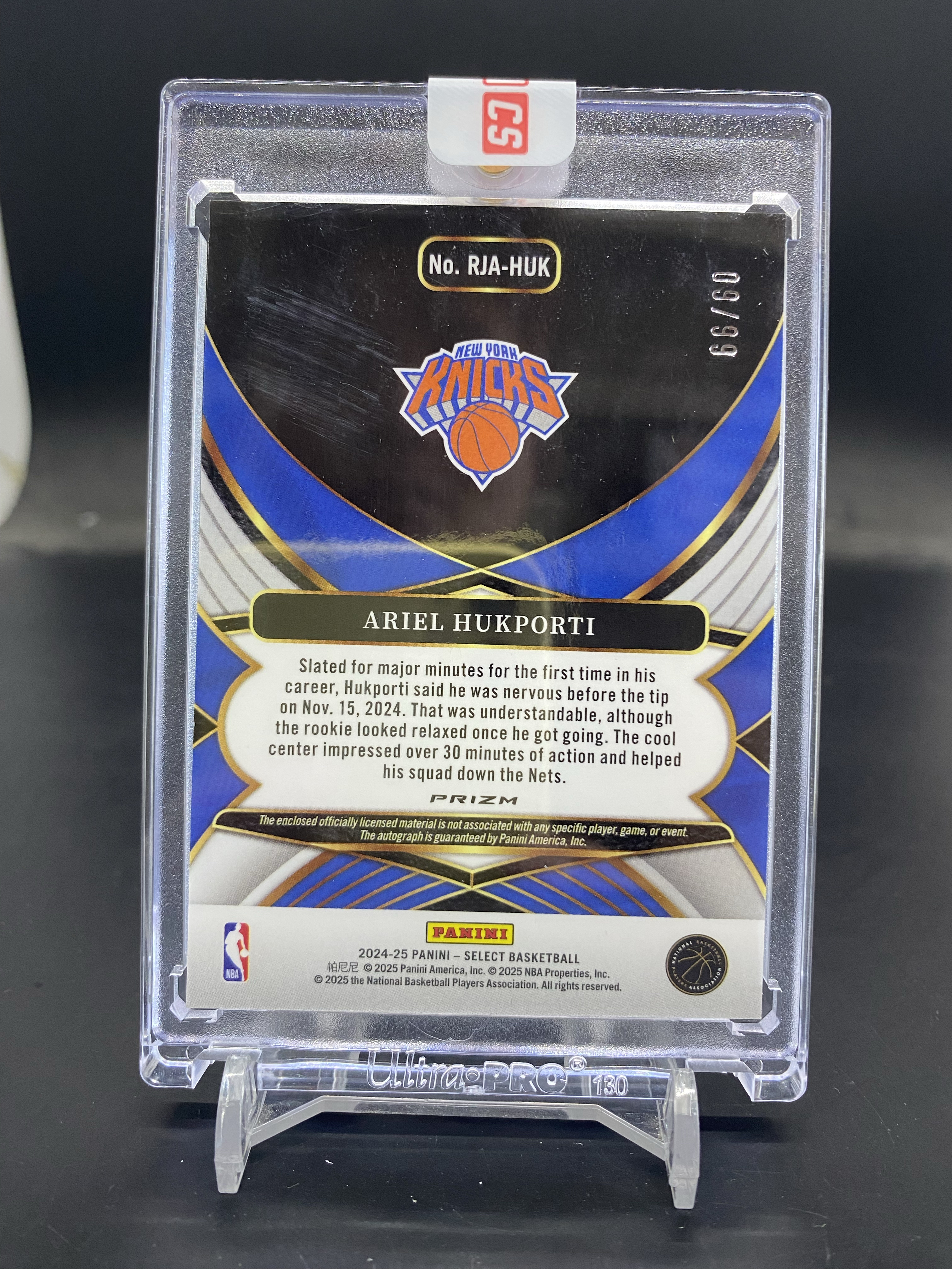 2024-25 Panini Select Ariel Hukporti RC 尼克斯 新秀 阿里尔 胡克波尔蒂 09/99编 紫折 RJA 单窗球衣签字卡 签名 折射 原封砖 收藏必备 「80」