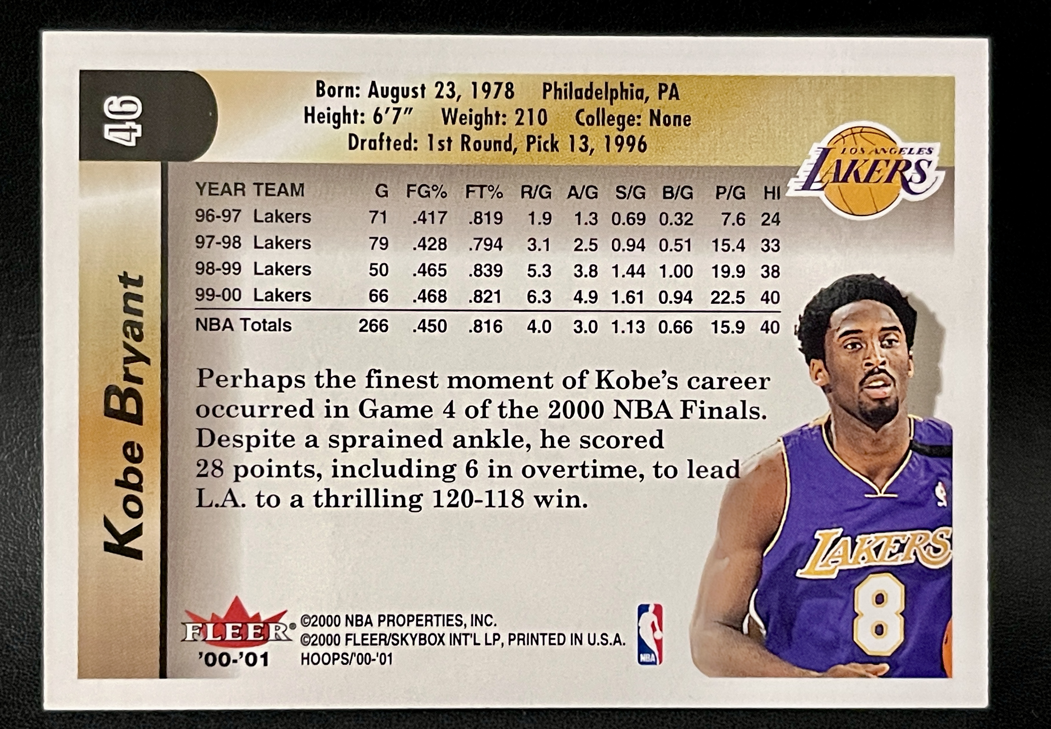 科比布莱恩特 黑曼巴 2000-01 Fleer Hoops 金折 折射非常漂亮 湖人 四大分卫 实卡超好看 值得收藏!