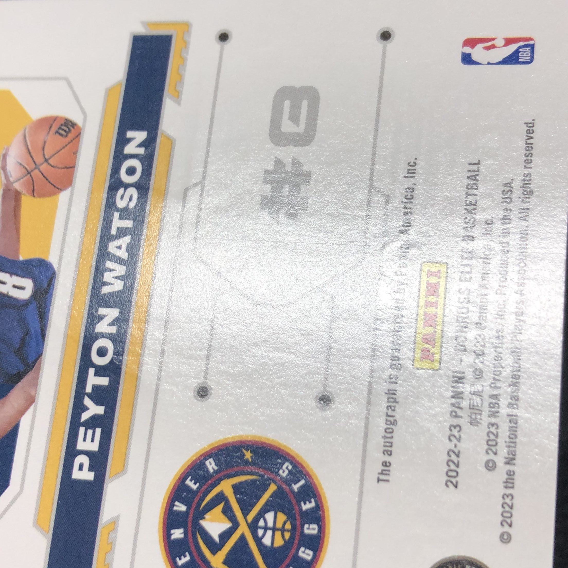【浩行拍卖 截标预付82%】2022-23 panini donruss elite peyton watson 杜蕾斯 精英 掘金 佩顿 沃特森 RC 新秀 签字 专收必备 瑕疵看图「浅尝」1116J02驡