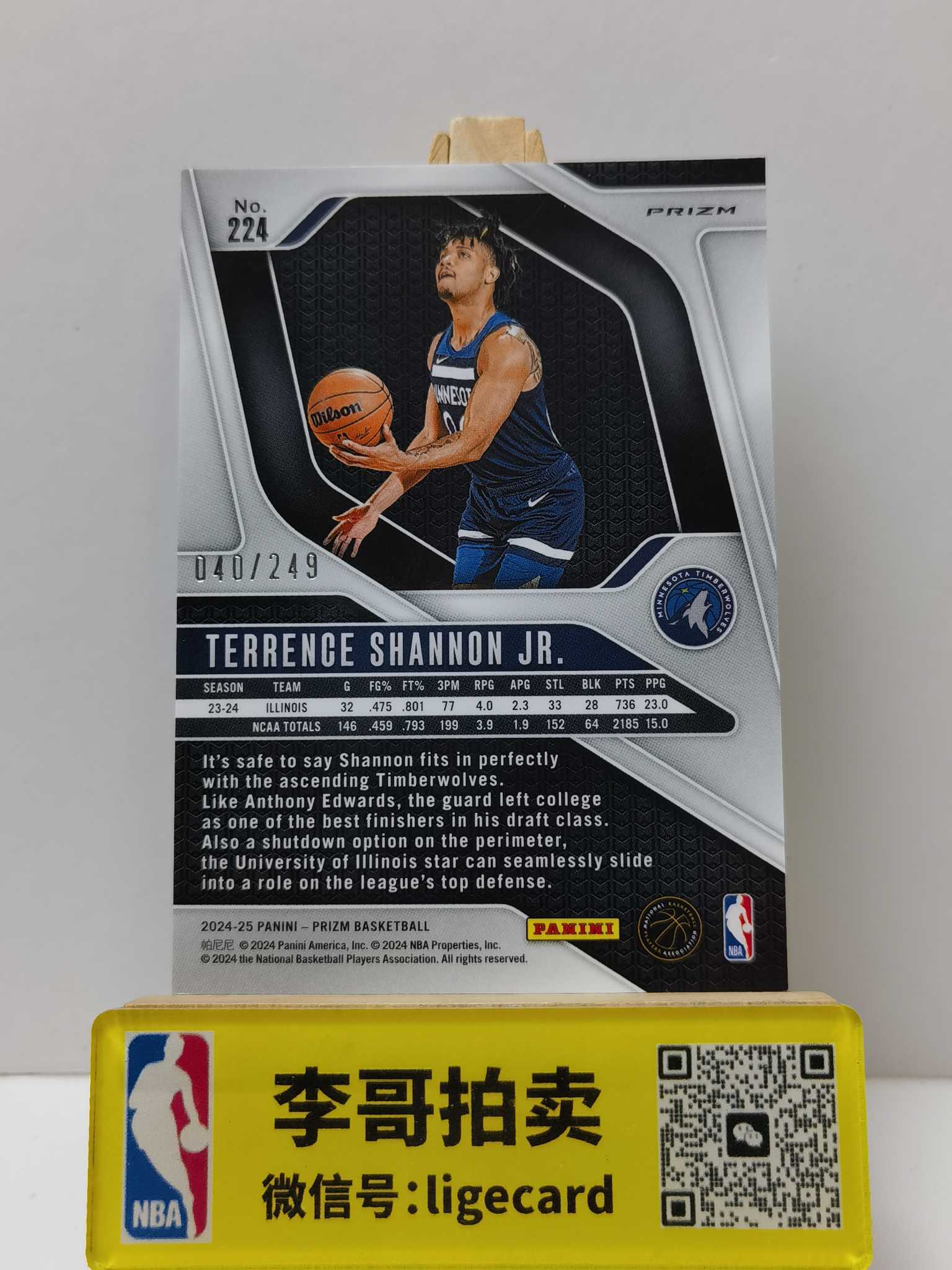 2024-25 Panini Prizm Terrence Shannon Jr. 【李哥代卖】PZ 小特伦斯香农 249编 RC新秀 折射 森林狼 红尘大飞1115