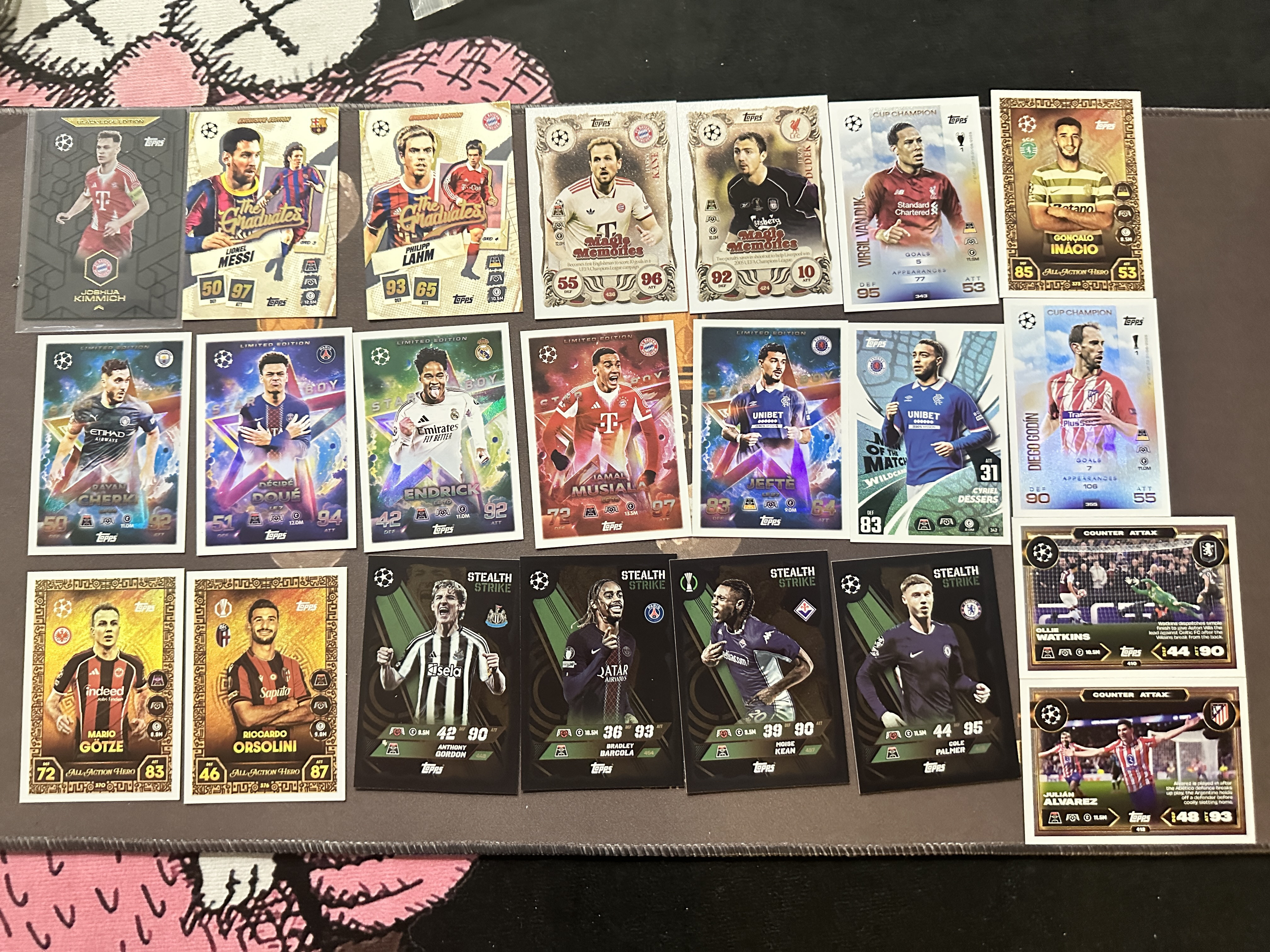2025-26 Topps Match Attax UCC 游戏版 梅西 拉姆 凯恩 范戴克 杜埃 恩德里克 穆夏拉 格策 戈登 巴尔克拉 帕尔默 小蜘蛛 萨利巴 打包32张 Lot不保卡品 凑套必备