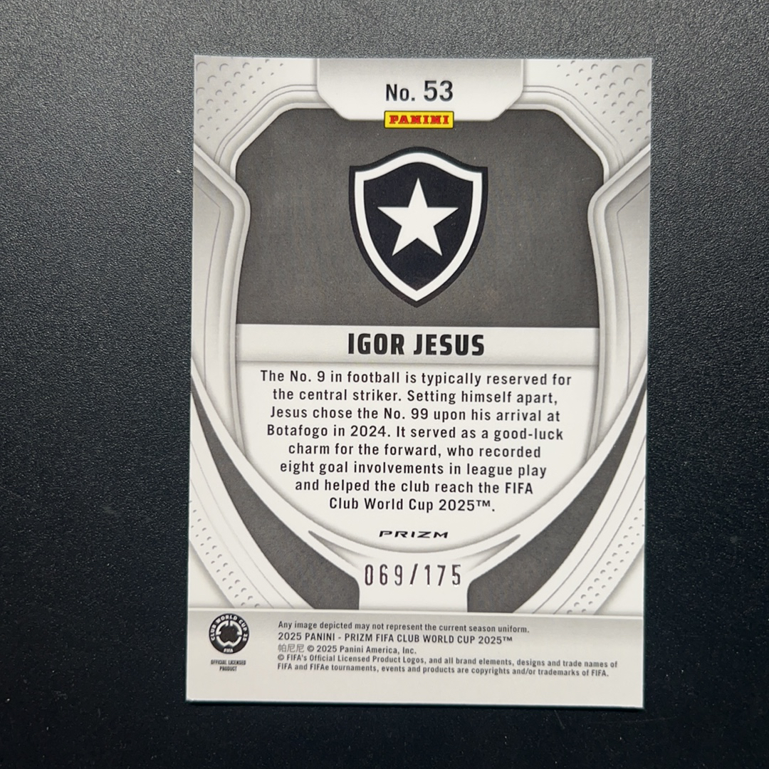 2025 Panini Prizm Igor jesus RC 世俱杯 pz 伊戈尔 热苏斯 博塔弗戈 新秀 蓝碎冰折 069/175编 卡品如图