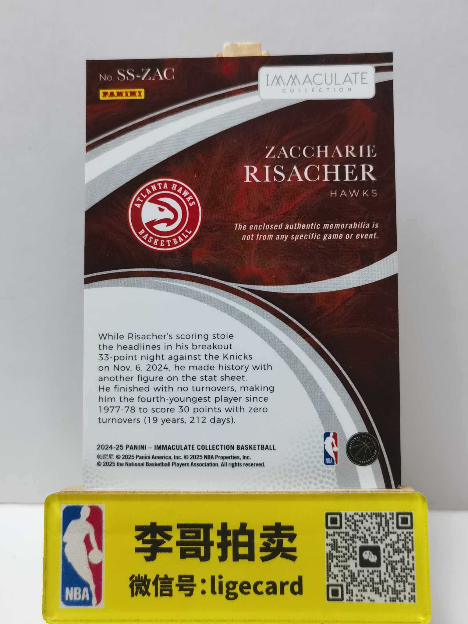 2024-25 Panini Immaculate Zaccharie Risacher 【李哥代卖】爱咪咪 扎卡里里萨谢 21/25编 RC新秀 球鞋物料切割 sneaker 老鹰 show1116