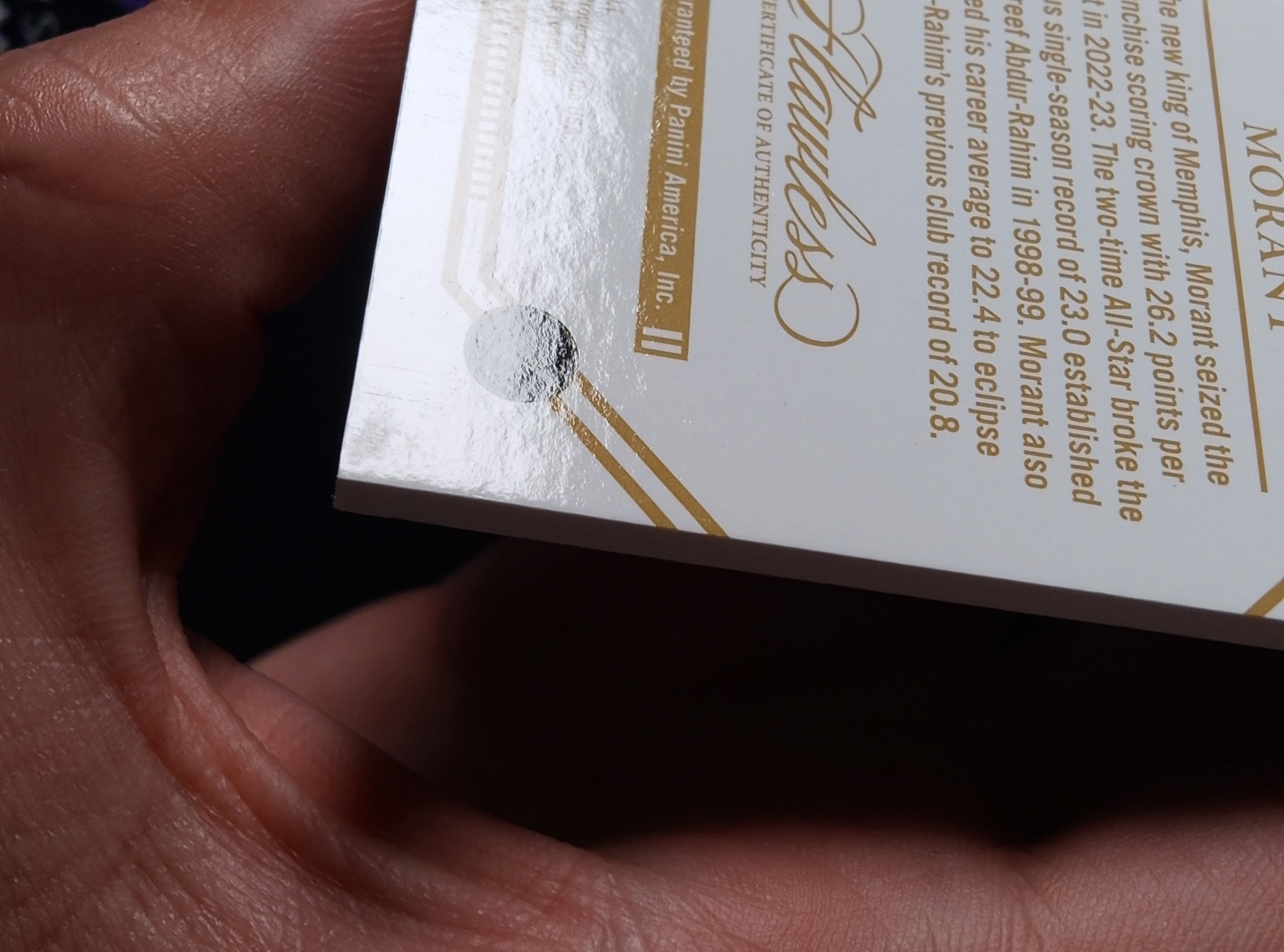4.品相说明:(1)木盒、国宝、IMM、手提、NOIR、小书、金书、小真金、黑曜石、Encased等厚卡或老卡老系列均有正常白边白角,Prizm、Optic、Select、Flux、Chrome等折射系列薄卡有小划痕、小印记或非人为卡片制作印刷的问题属于正常通行品,镜面系列有小划痕属于通行品相。所有卡片不保证金标,要评级追求金标者请直接购买金标,请有强迫症、品相控的卡迷绕道和谨慎出价;(2)原封卡有明显大瑕疵会标出;(3)所有拍品均为实图专业设备拍摄,参与竞价视为接受卡片的品相,不作特殊说明的都是通行品,如有明显大瑕疵会拍照说明;(4)由于拍摄卡片的角度以及光线的限制,若您对卡片品相仍存在疑问,可在【截标前】向卖家咨询提供更多细节图。