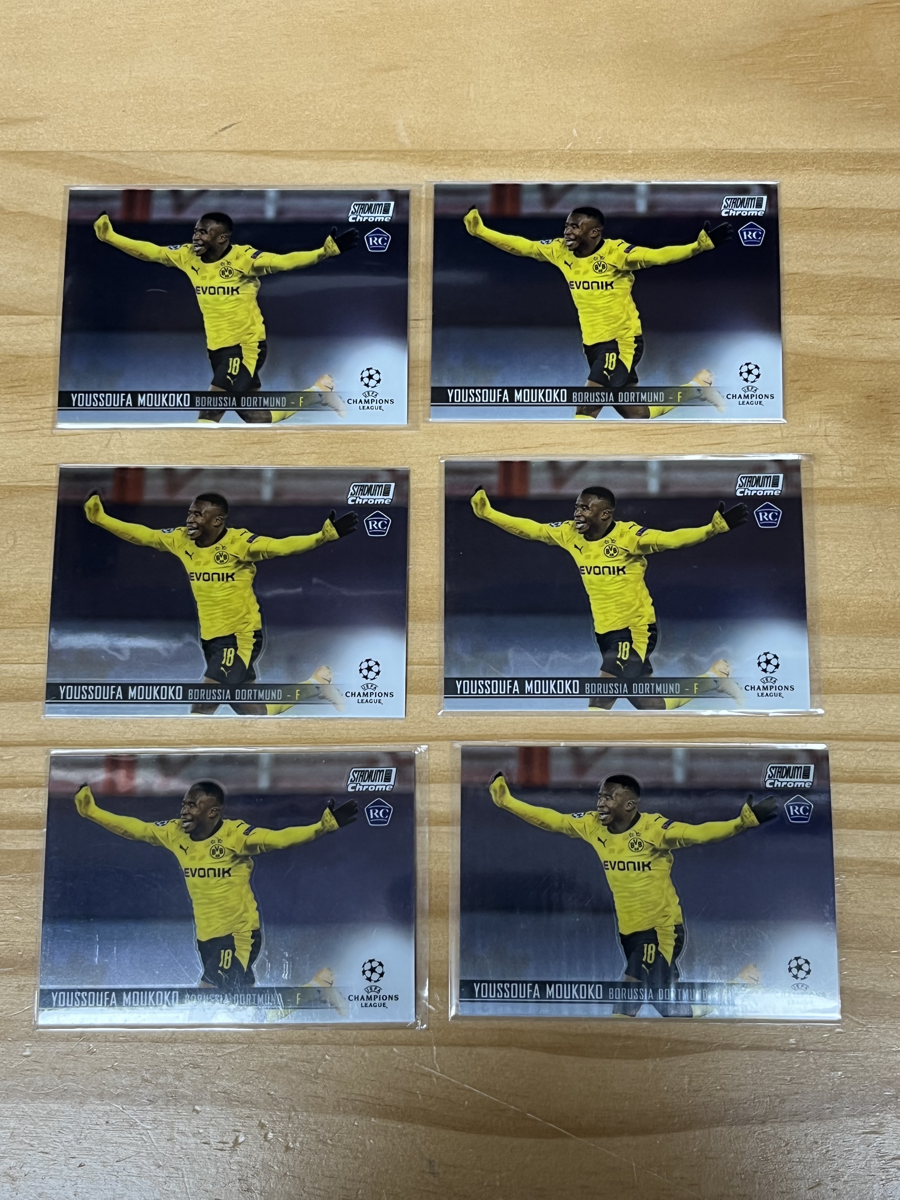 2020-21 TOPPS STADIUM CLUB UEFA 欧冠 多特 Youssoufa Moukoko 穆科科 新秀 RC base LOT 6张打包 HLS