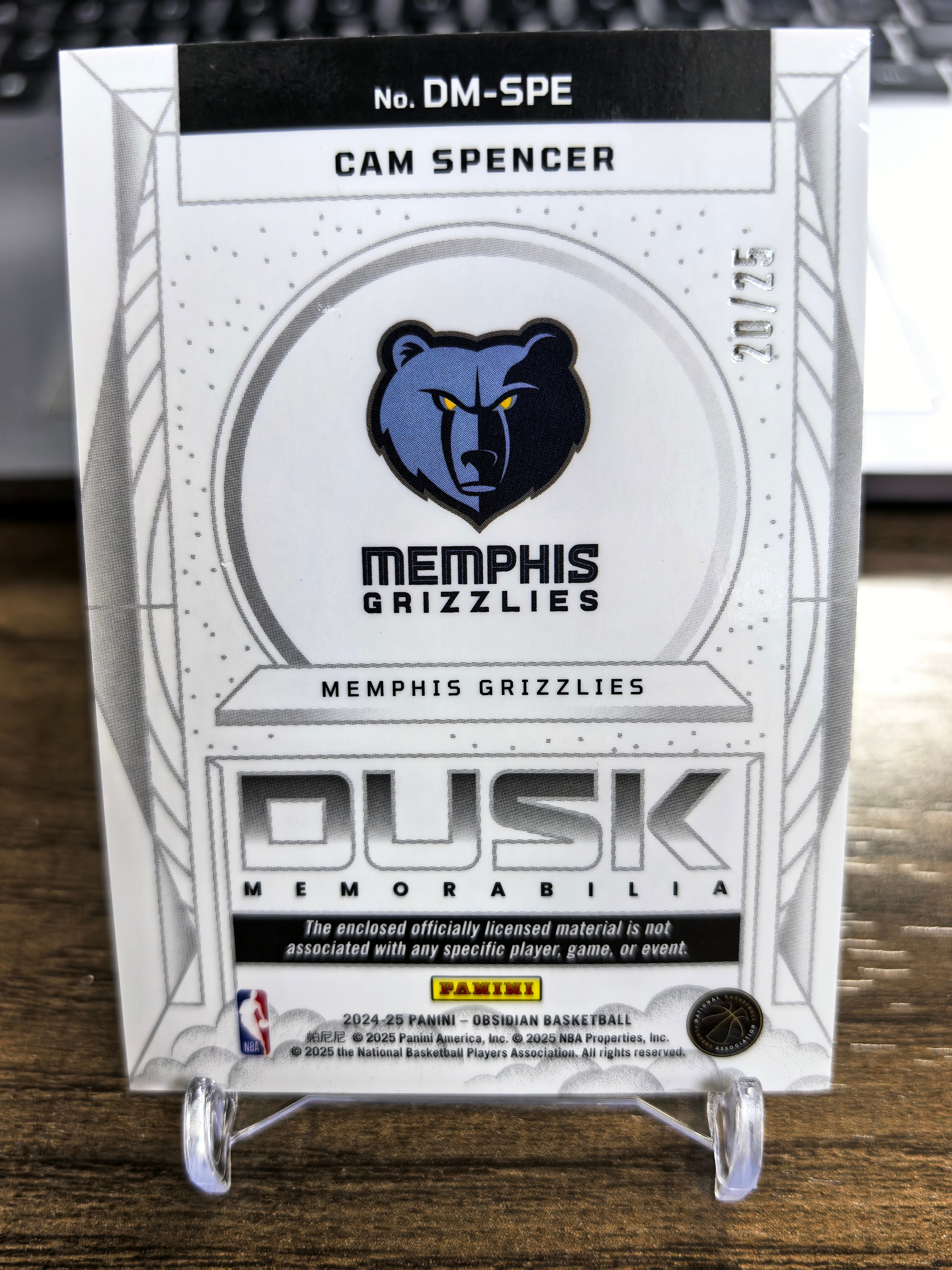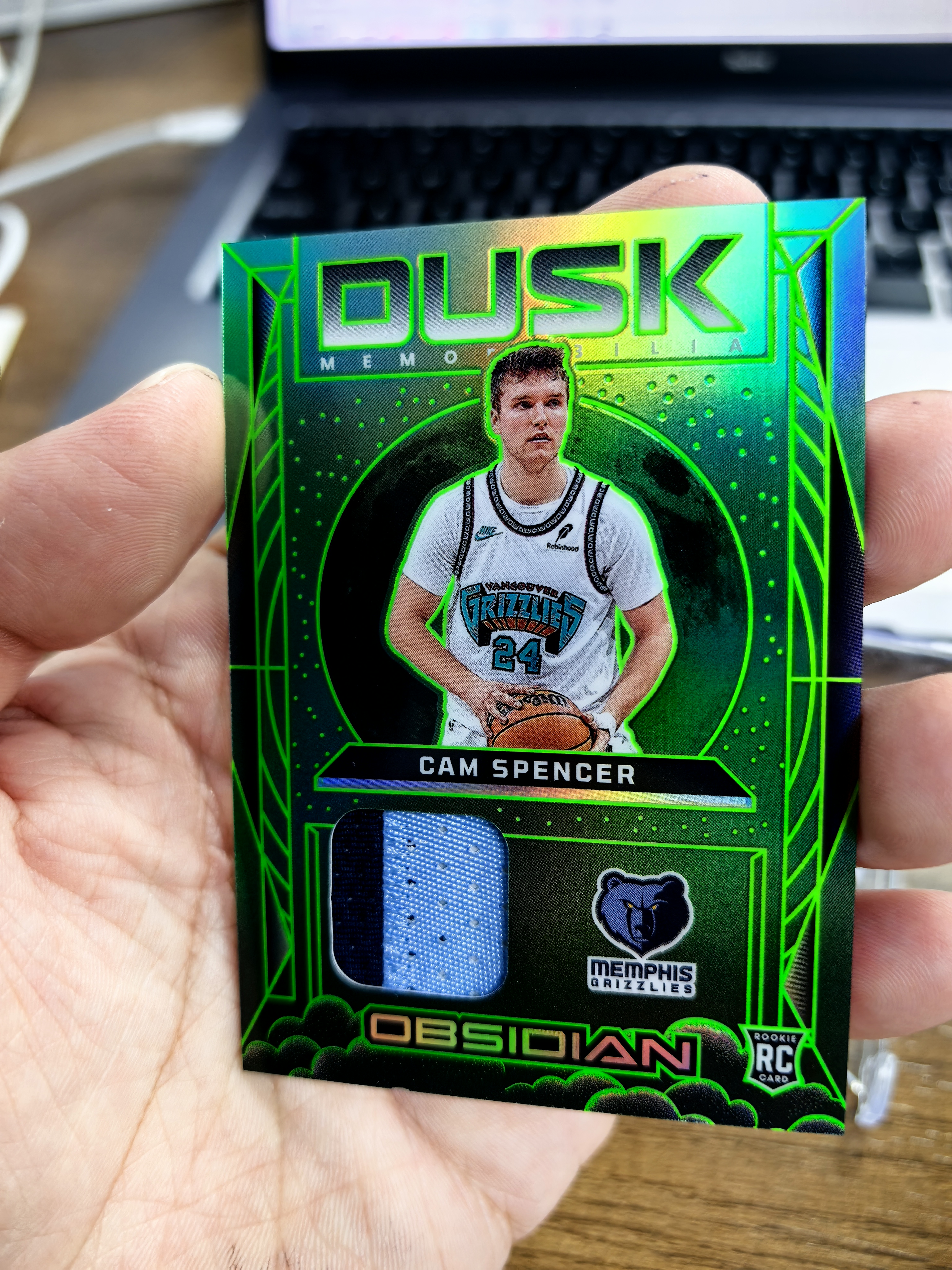 2024-25 Panini Obsidian Cam Spencer RC /25编 卡姆 斯潘塞 灰熊 黑曜石 荧光绿折射 新秀 球衣物料切割 杜克大学+灰熊球衣 rookie