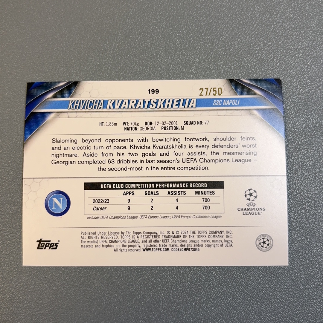 【风速狗】2023-24 topps 龙年碧玉 碧玉折射 金折 Kvaratskhelia 那不勒斯 科瓦拉斯赫利亚 K77 大巴黎 27/50编 陈哥