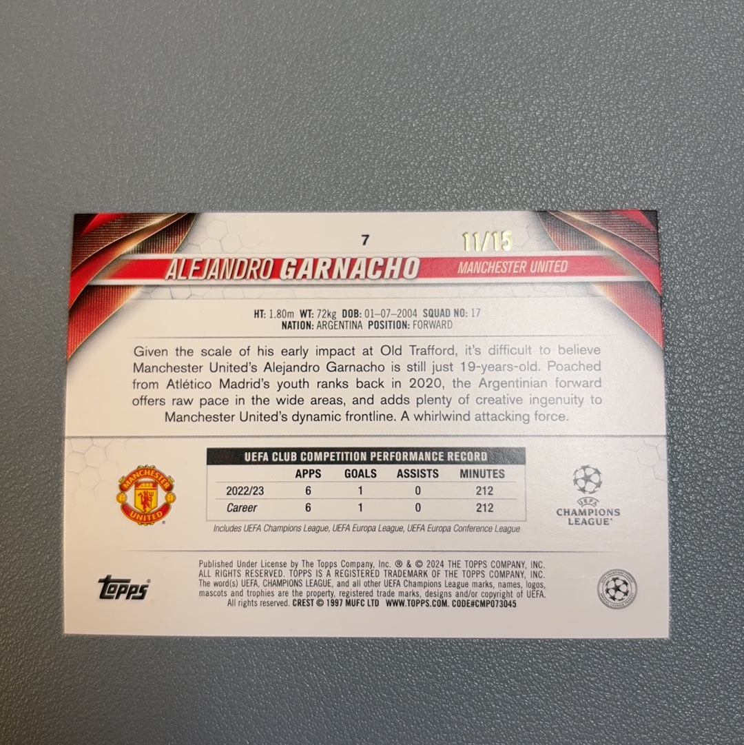 【风速狗】2023-24 topps 龙年碧玉 碧玉折射 紫折 曼联 GARNACHO 加纳乔 11/15编 轻印 陈哥