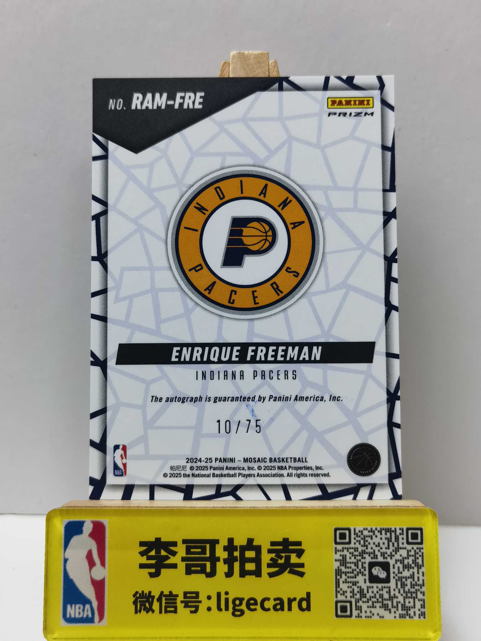 2024-25 Panini Mosaic Enrique Freeman 【李哥代卖】马赛克 恩里克弗里曼 75编 RC新秀 贴签签字 折射 步行者 蓝印瑕 Misty1117